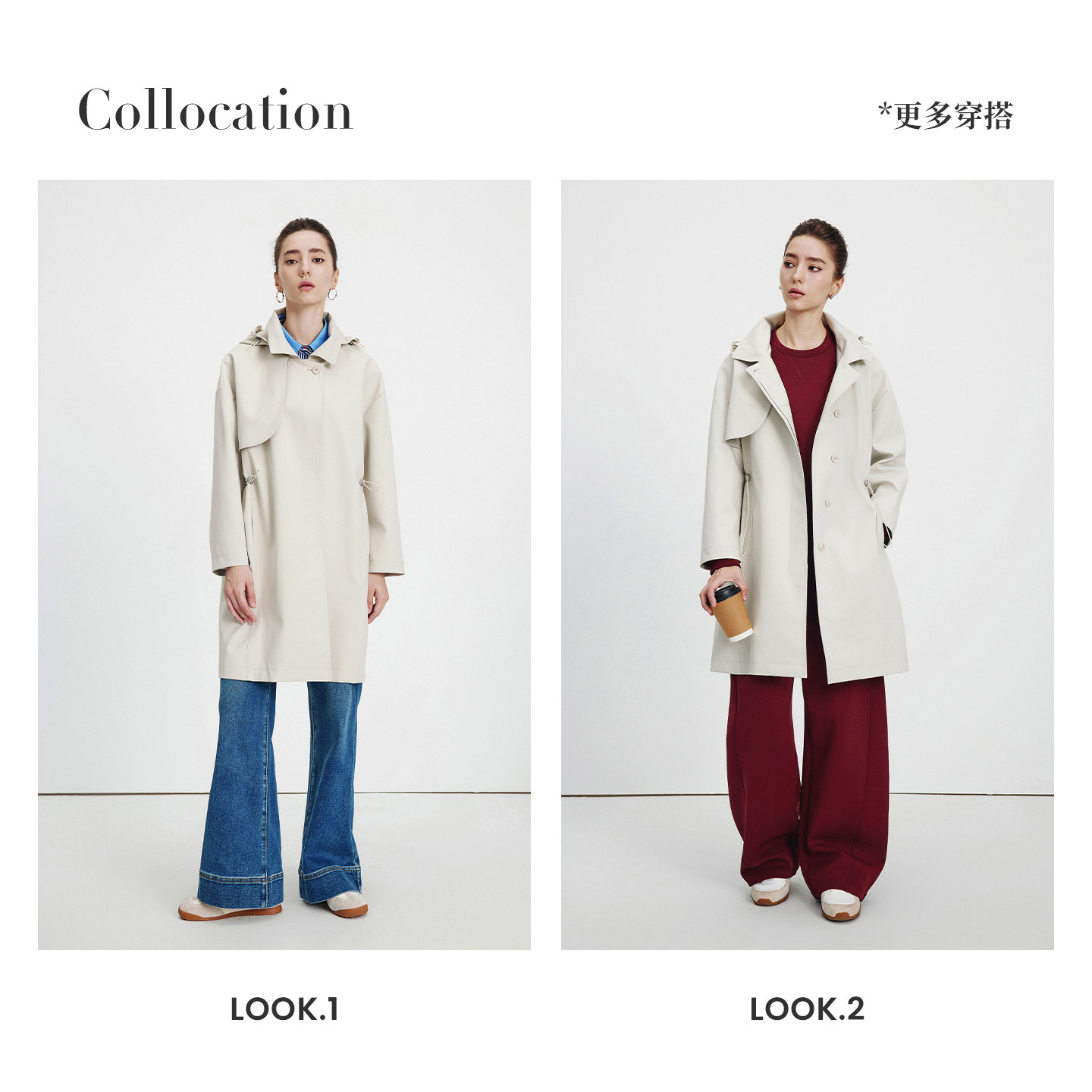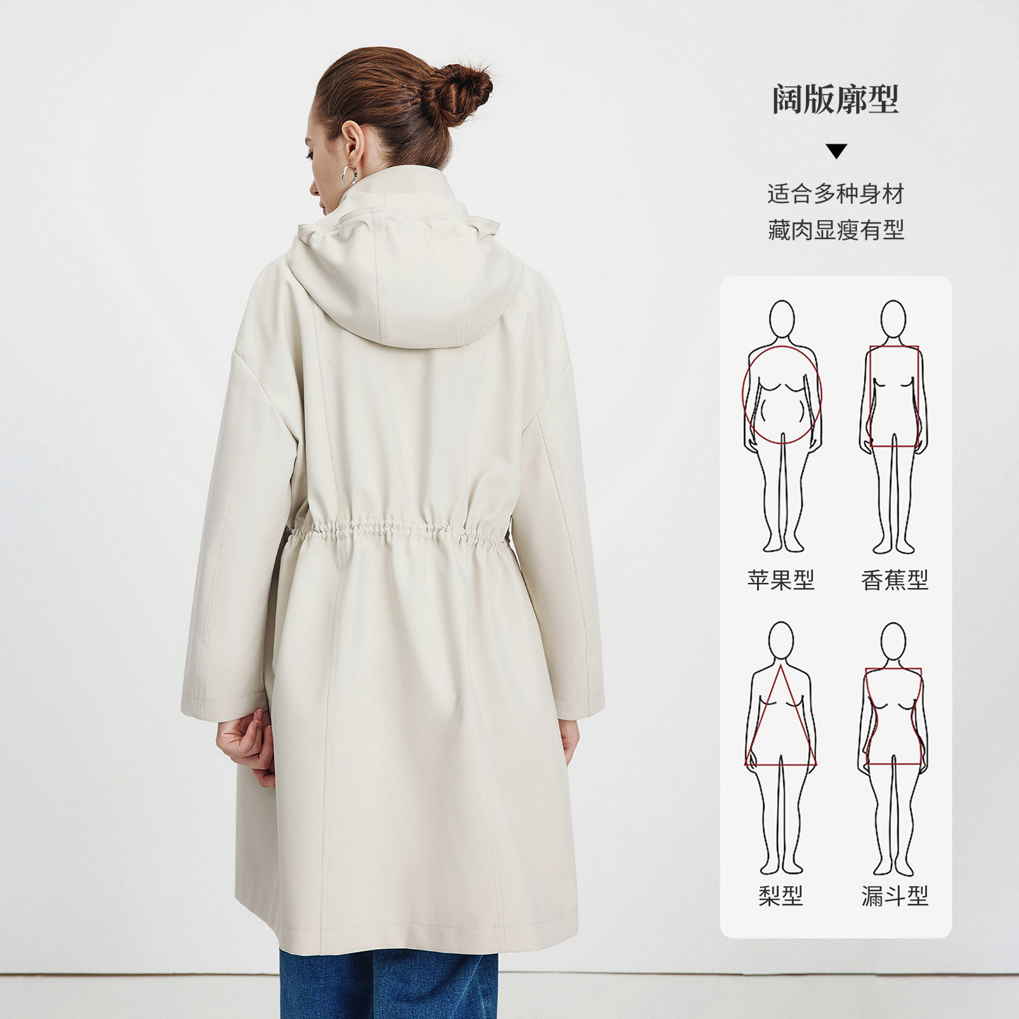 通勤中长款 连帽外套女休闲阔版 风衣 新款 Navigare意大利小帆船春季