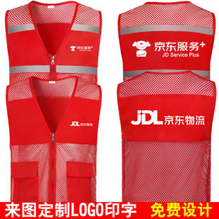 京东外卖秒送马甲夏季 工作服定制透气网眼反光广告背心印字印logo