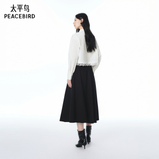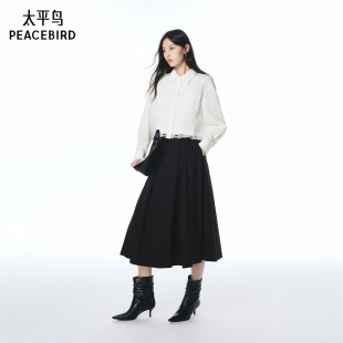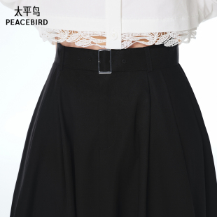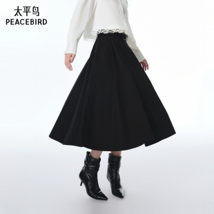 太平鸟黑色伞裙半身裙长绒棉仿天丝工艺A3GFF3276 商场同款