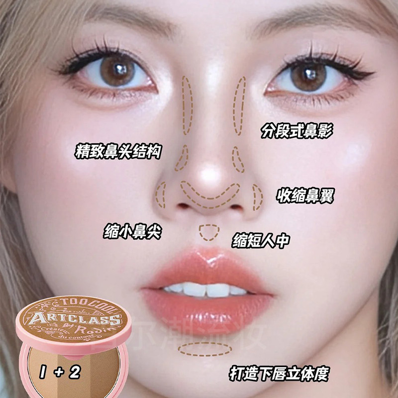 school涂酷修容盘三色粉饼阴影鼻侧影遮瑕高光一体 for too cool