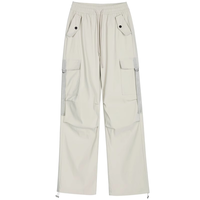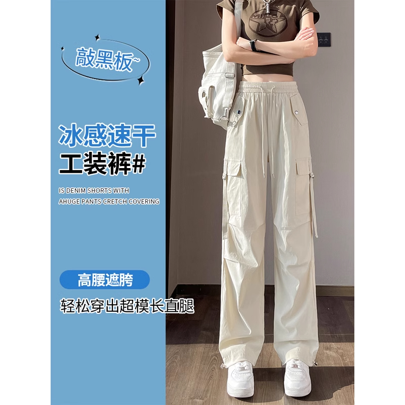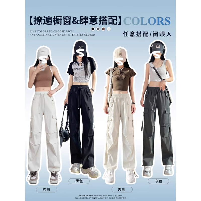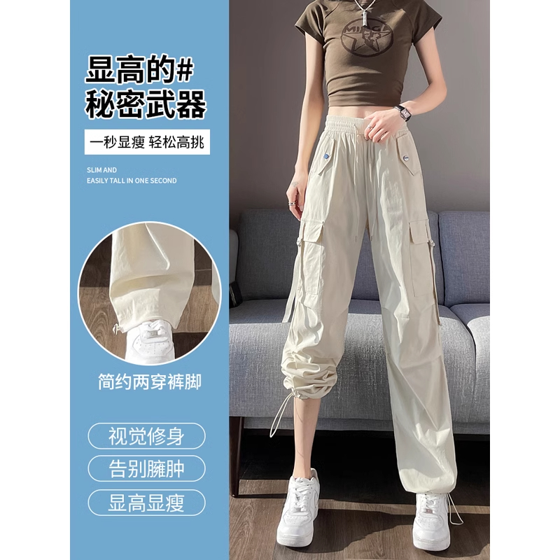 小个子直筒降落伞运动休闲裤 女春夏秋冬季 子 裤 清仓捡漏杏白色工装
