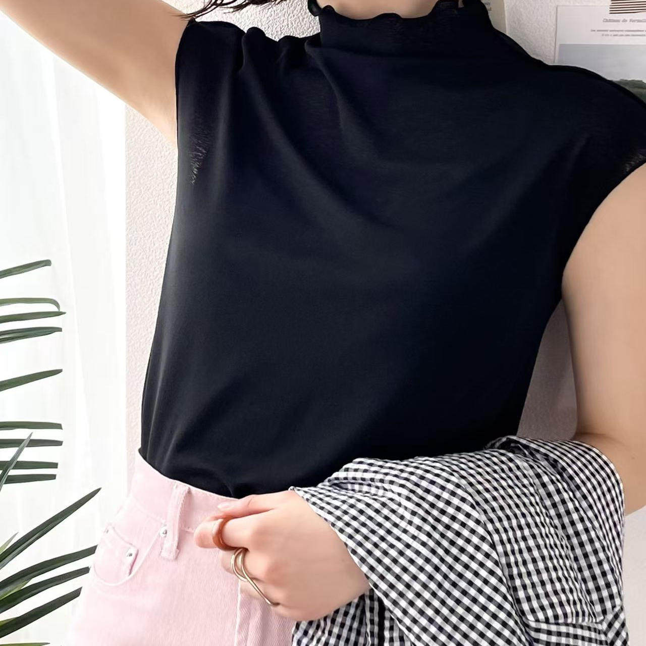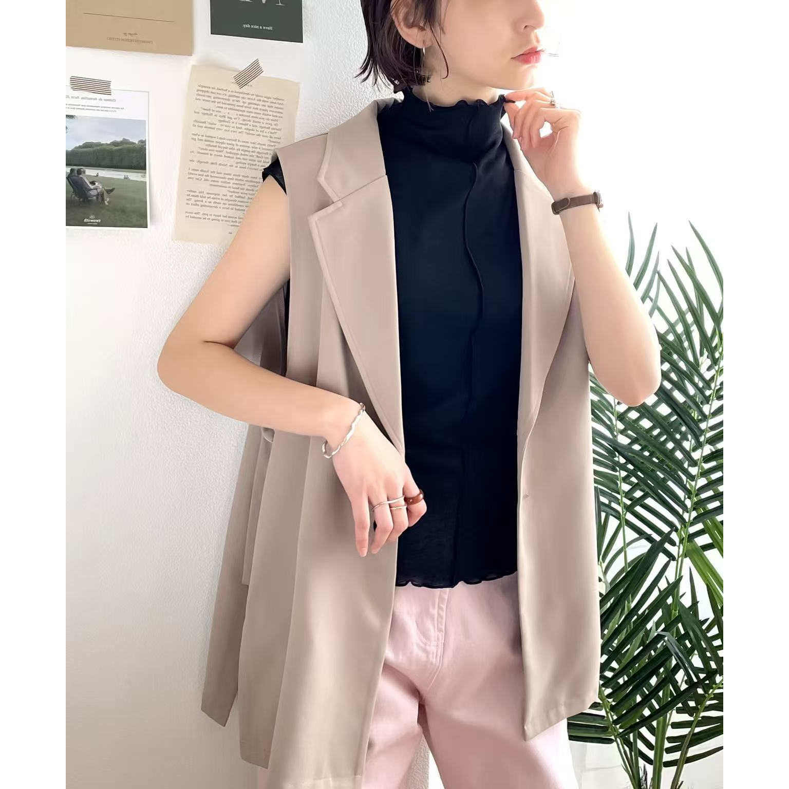 小衫 打底衫 30379 轻盈性感木耳边立领轻薄麻调无袖 日单品牌夏新款