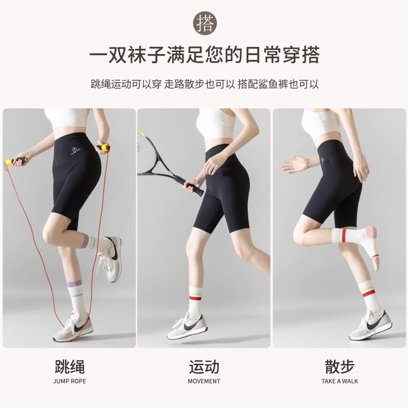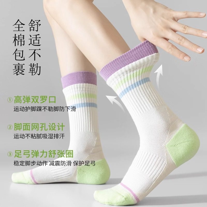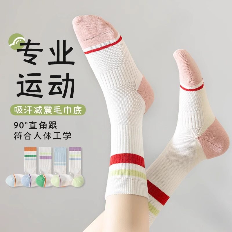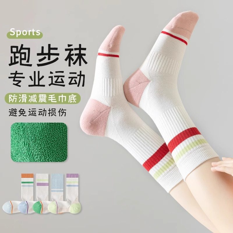 防臭毛巾底无骨配鲨鱼裤 专业跑步运动袜女中筒袜新款 100%纯棉