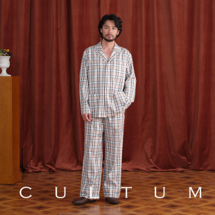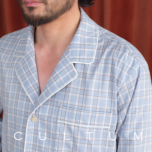 男睡衣家居服套装 CULTUM翻领镶边格纹睡衣衬衫 120支双股全棉