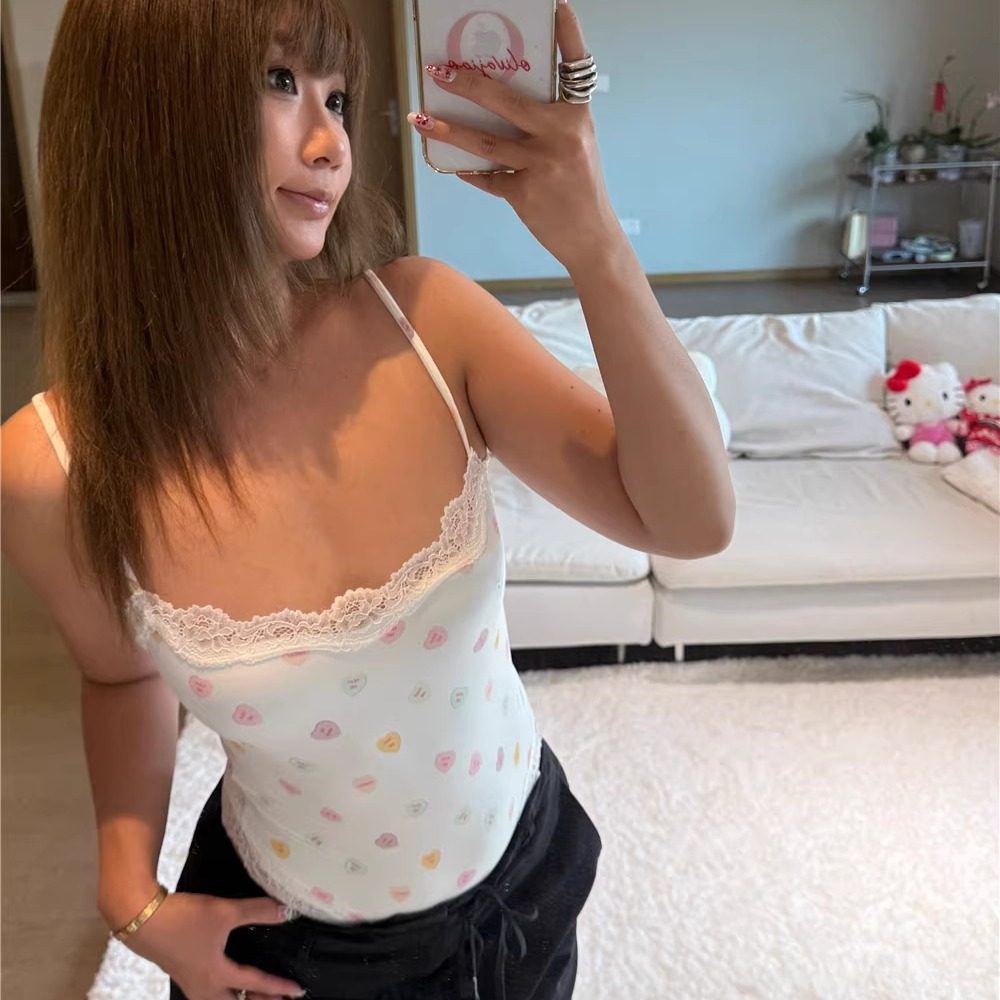 蕾丝性感粉底液吊带小背心女遮肚带胸垫美背外穿内搭上衣白色内衣