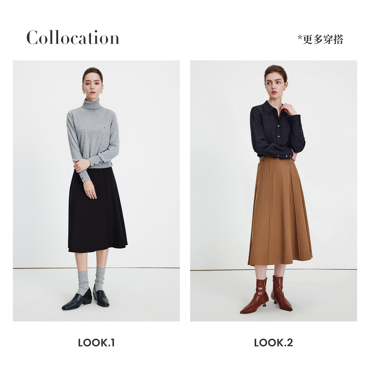 Navigare意大利小帆船女半身裙秋季 百搭中长裙 复古羊毛A字裙修身