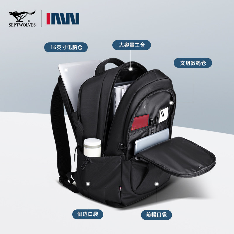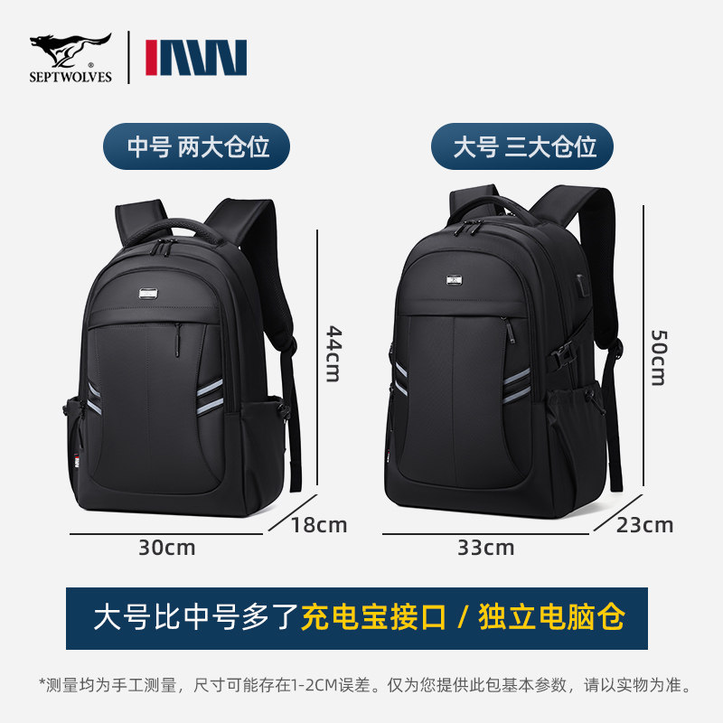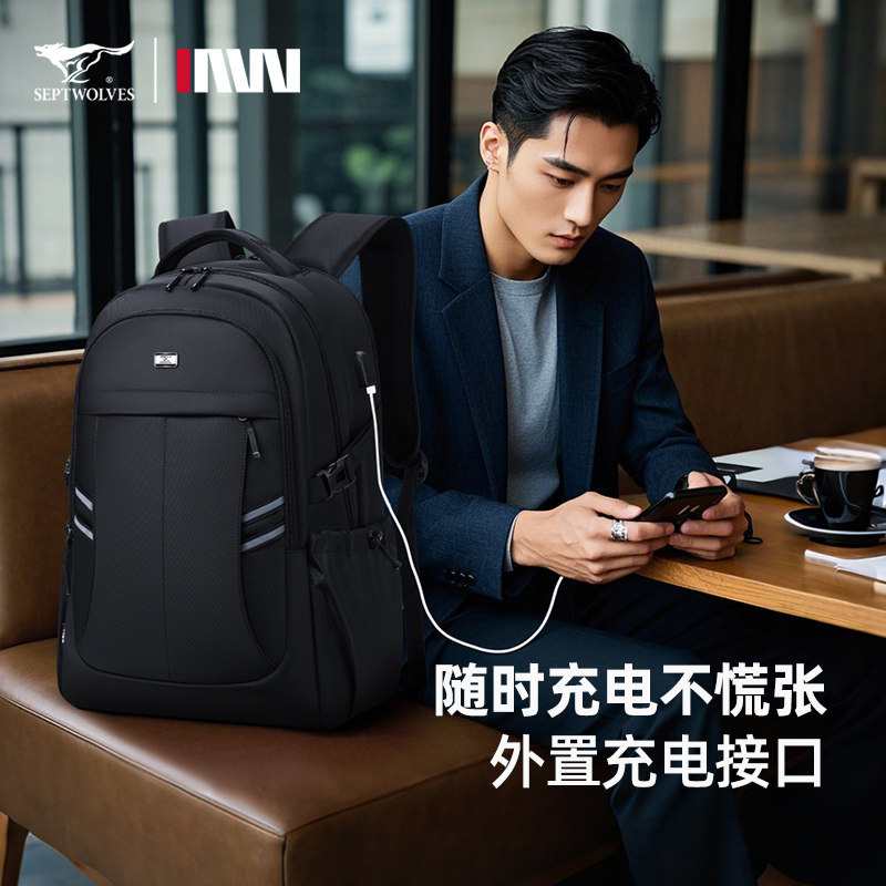 七匹狼男士 大容量商务出差旅行电脑包大学生背包潮 双肩包2025新款