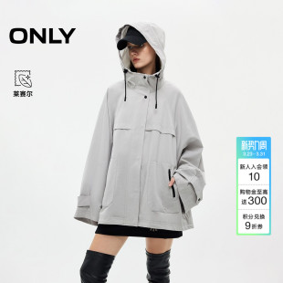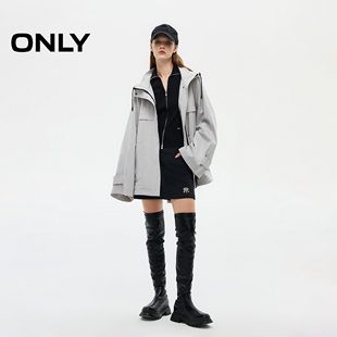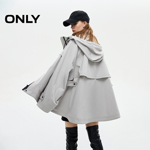 ONLY春季 连帽风衣外套女 潮酷机能风防钻风抽绳按扣长袖