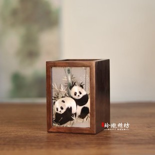 苏绣笔筒手工双面绣书房摆件国风刺绣工艺品摆件苏州特色伴手礼品