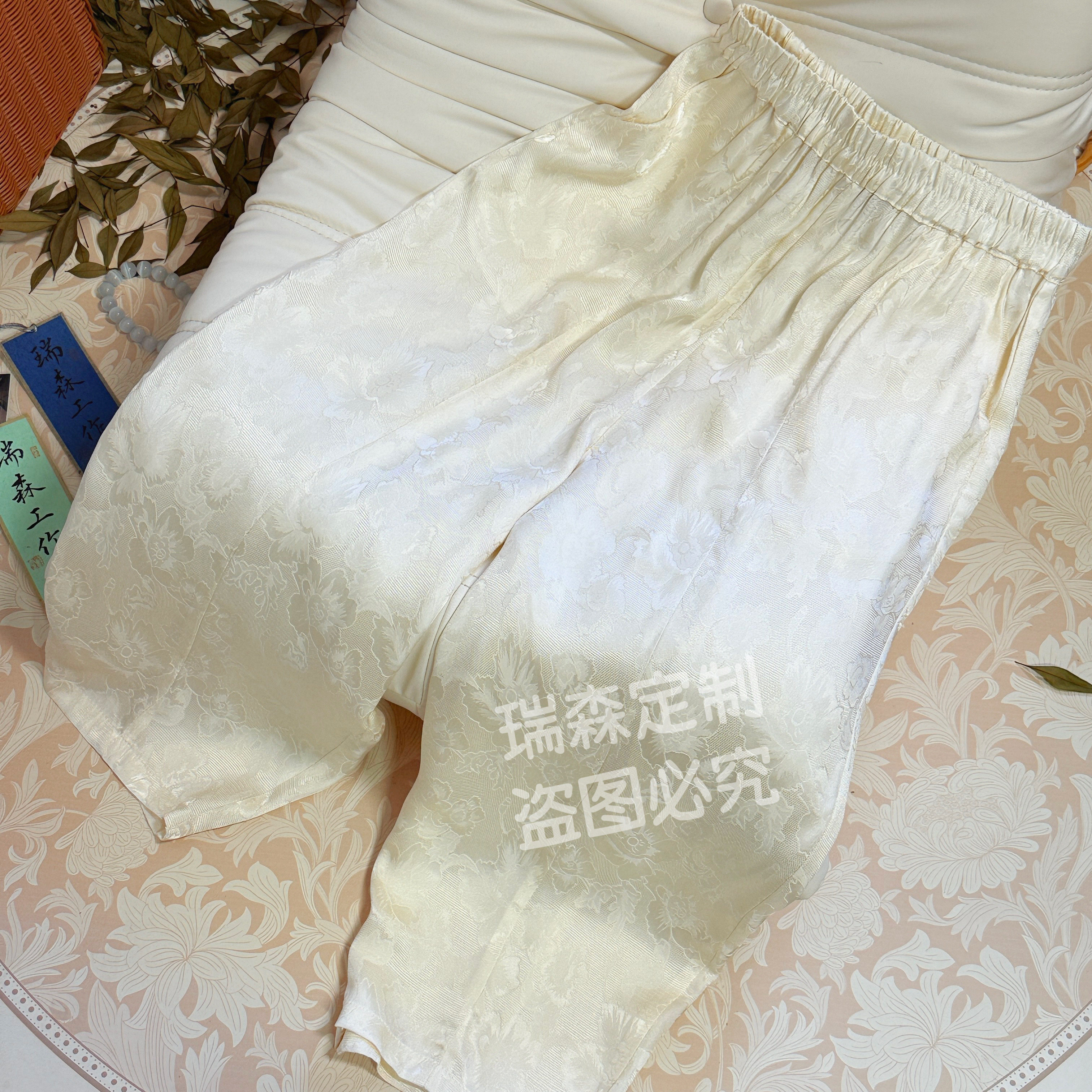 中式 裤 国风全萝纯色织花萝卜裤 腰围64 长88 百搭气质 845