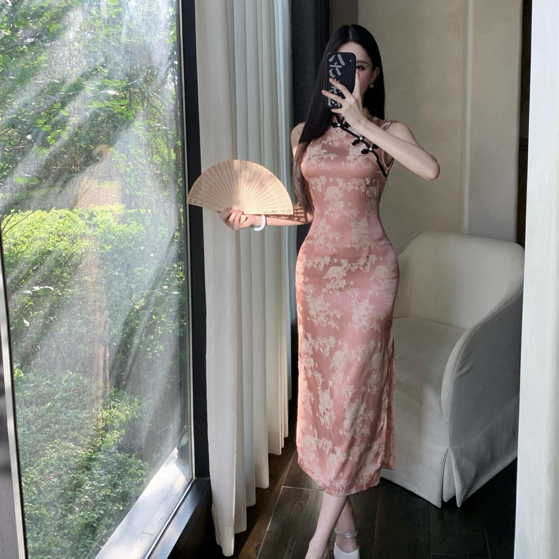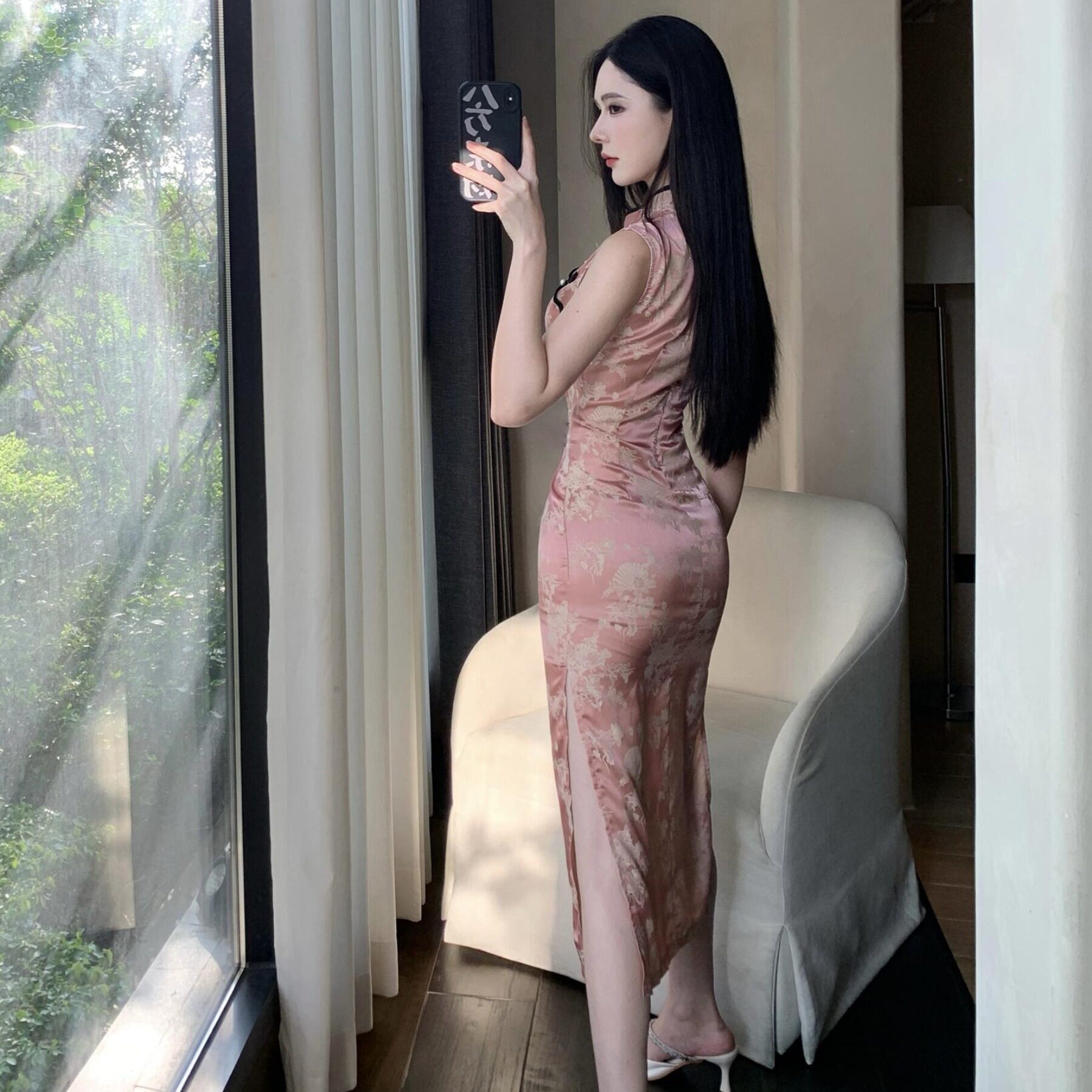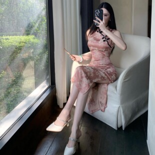 气质优雅缎面新中式 包臀开叉性感复古连衣裙女技师服 改良旗袍修身