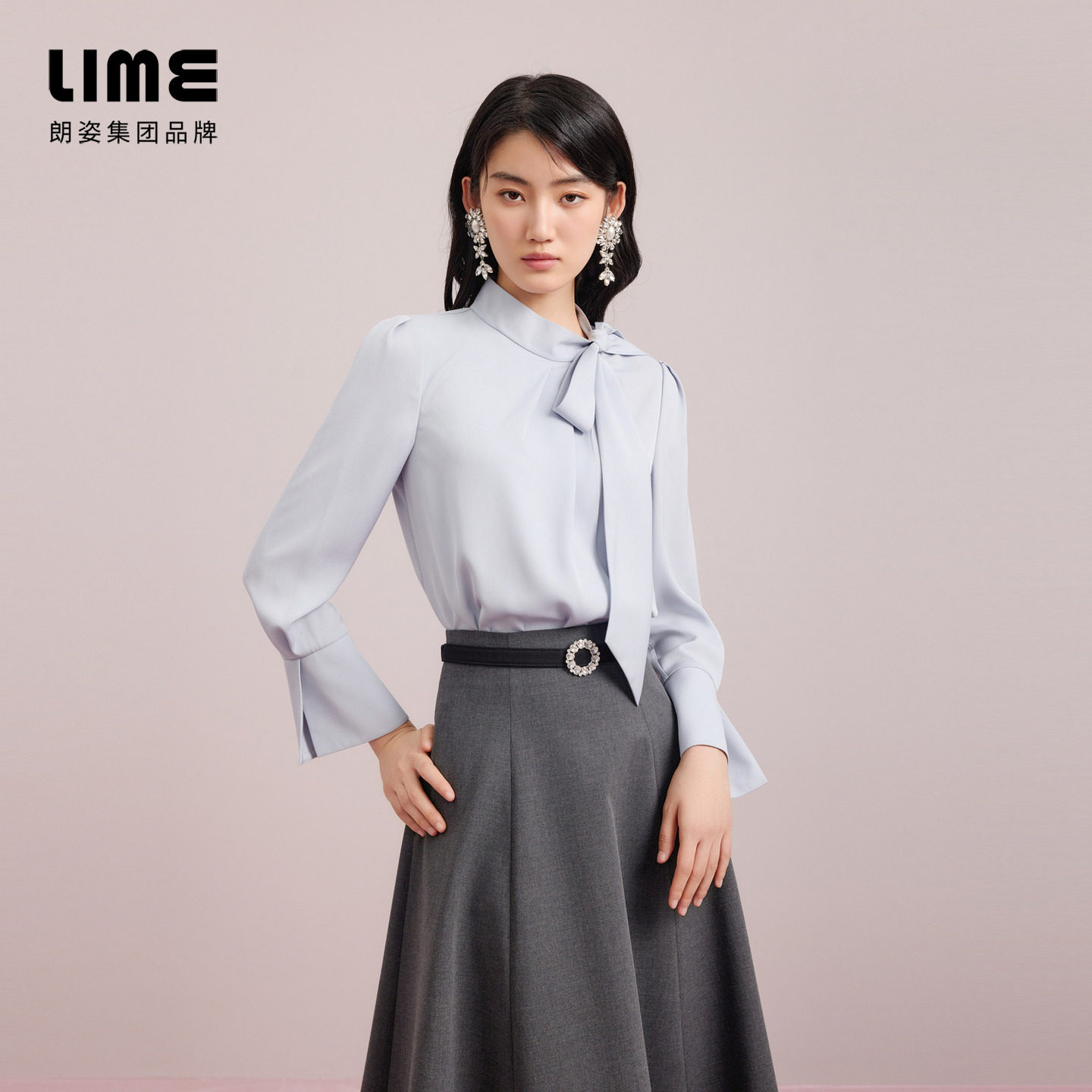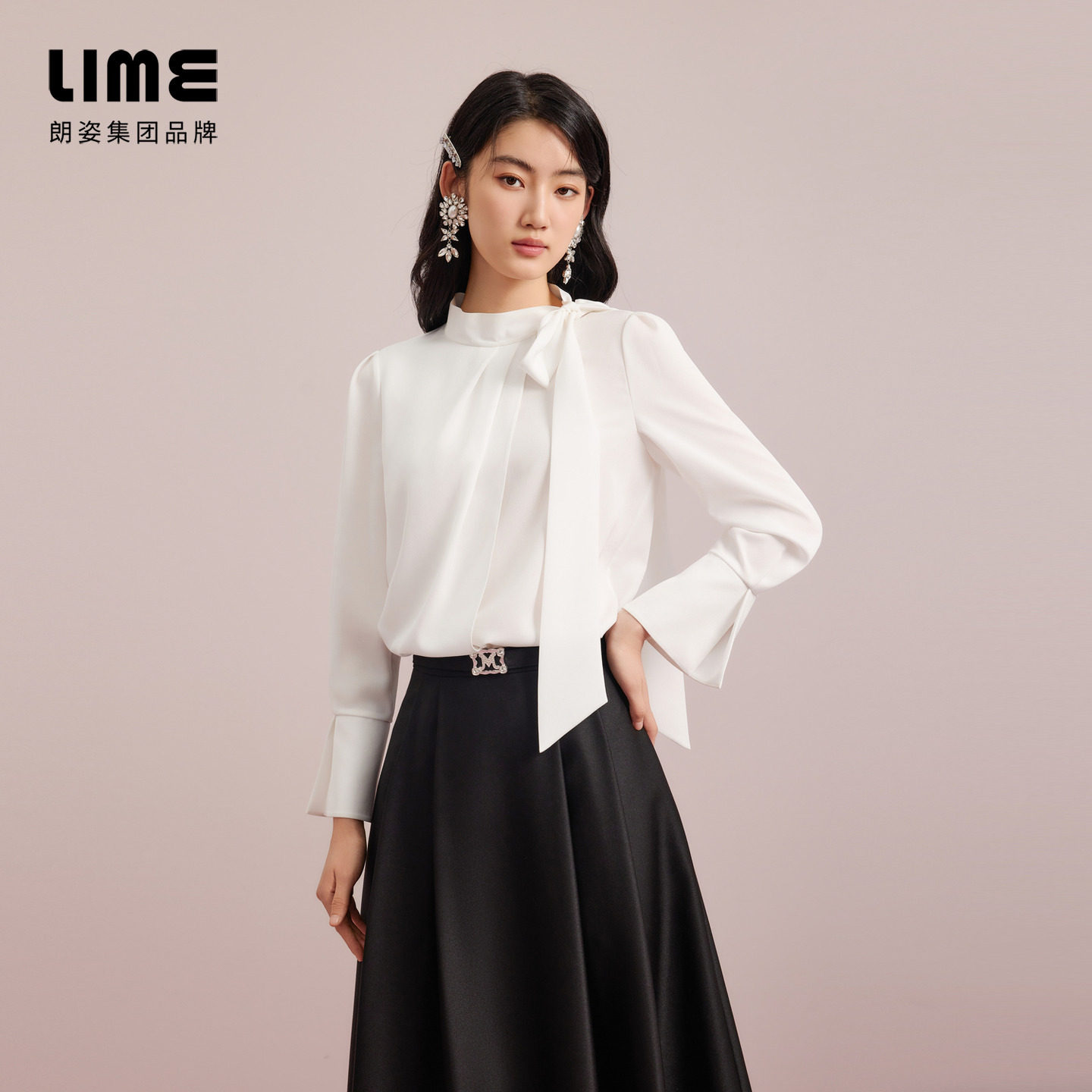朗姿集团LIME莱茵飘带领蝴蝶结通勤衬衫 搭片设计感上衣 25秋新款