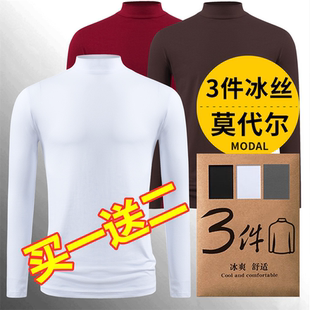 春秋内穿大码 T恤衫 纯色打底衫 修身 莫代尔秋衣 男士 薄款 半高领长袖