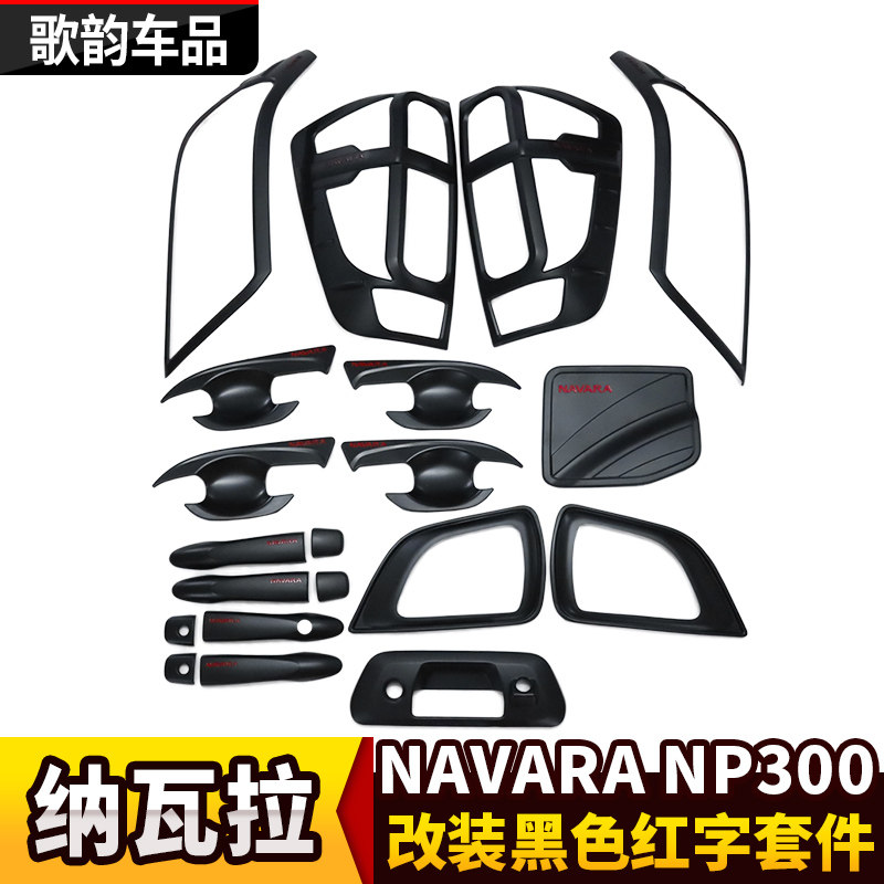 纳瓦拉NAVARA改装 黑色前后尾灯保护罩NP300雾灯框油箱盖拉手门碗