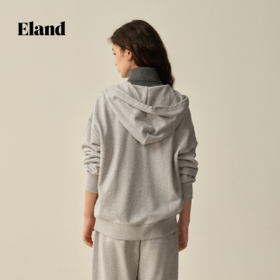 连帽拉链宽松外套冬季 Eland衣恋卫衣女时尚 新款 100%棉