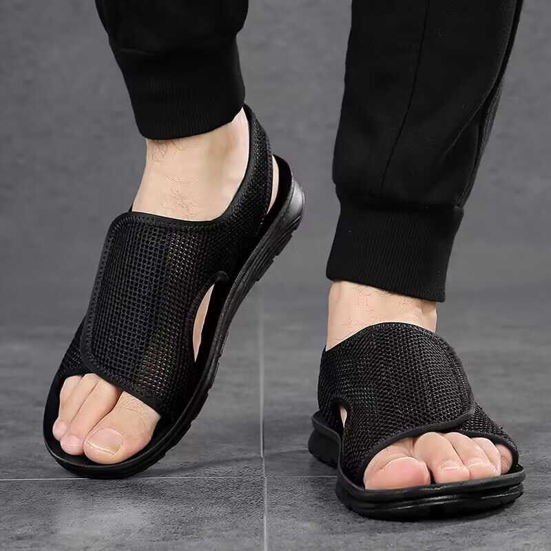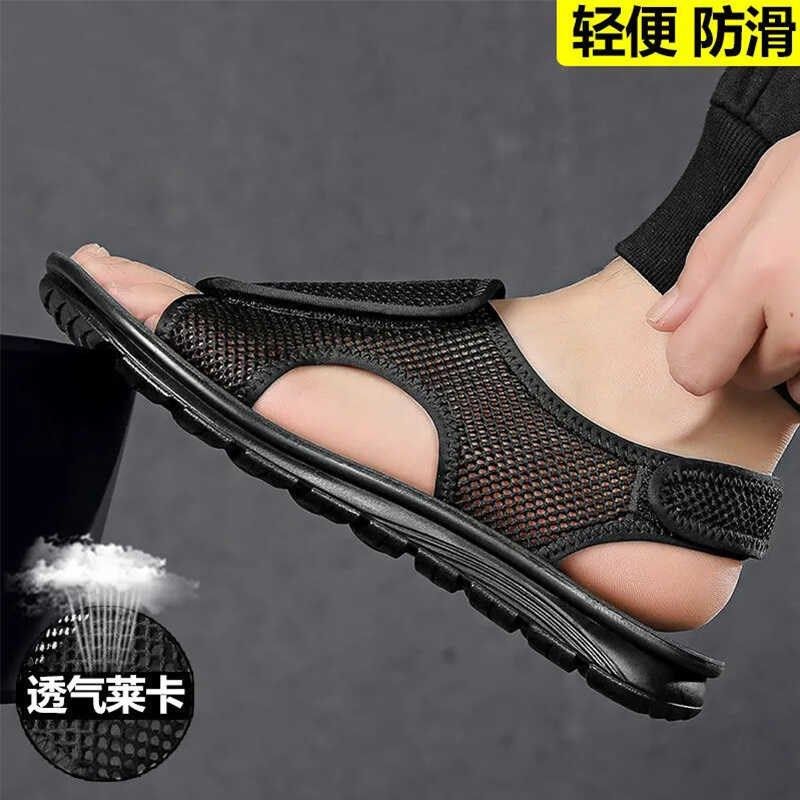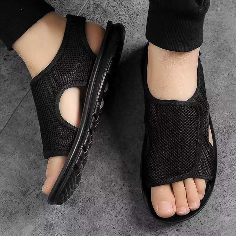 凉鞋 脚宽脚胖魔术贴男士 夏季 镂空透气防滑编织凉鞋 加宽可调节