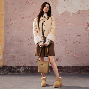 南风Chio2nd 真羊毛雪国秘语水桶包包女秋冬毛绒手提包单肩斜挎包