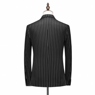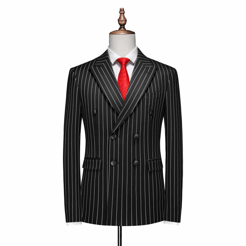 套装 黑色条纹双排扣西装 男士 加大码 西服外套 秋季 商务休闲正装 新款
