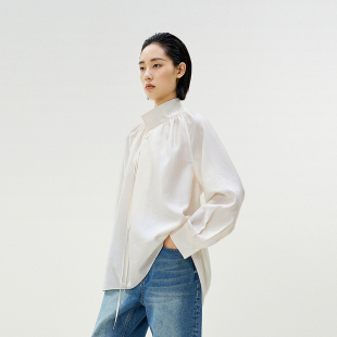 长袖 女重工立领设计感法式 衬衣2P1212900 5A桑蚕丝衬衫 LESS春季