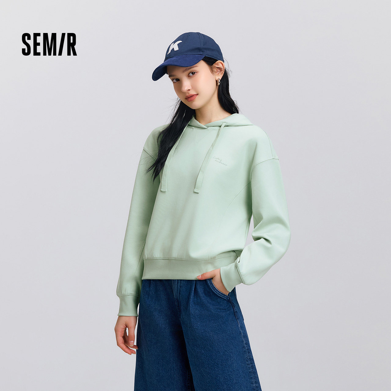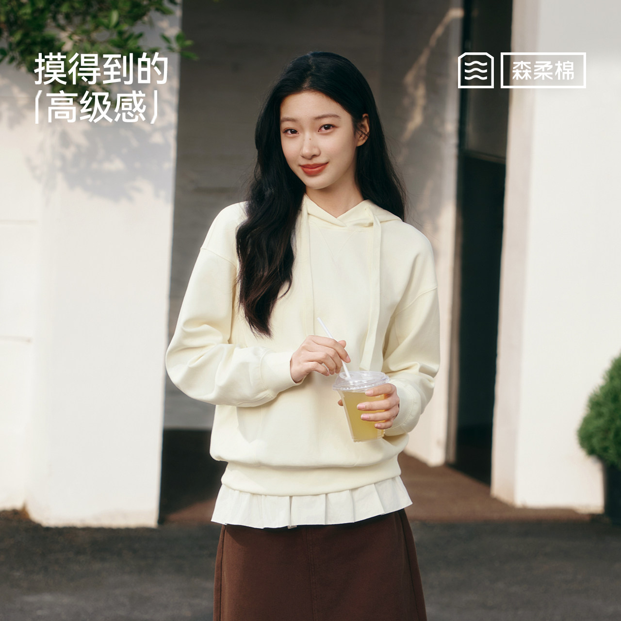 绣花连帽宽松分割上衣女生简约温柔系套头衫 森柔 森马卫衣女春季