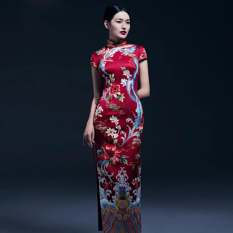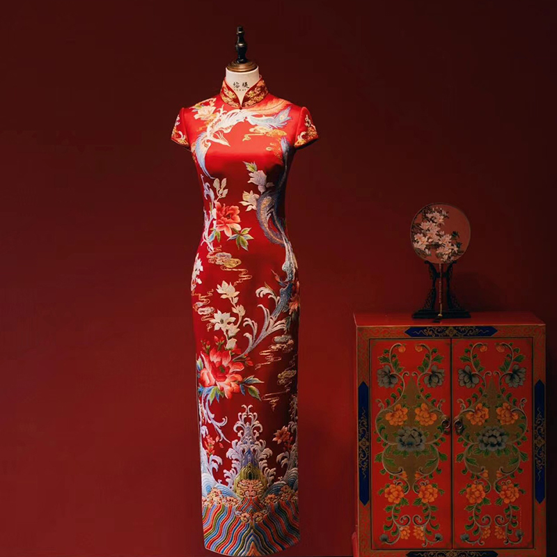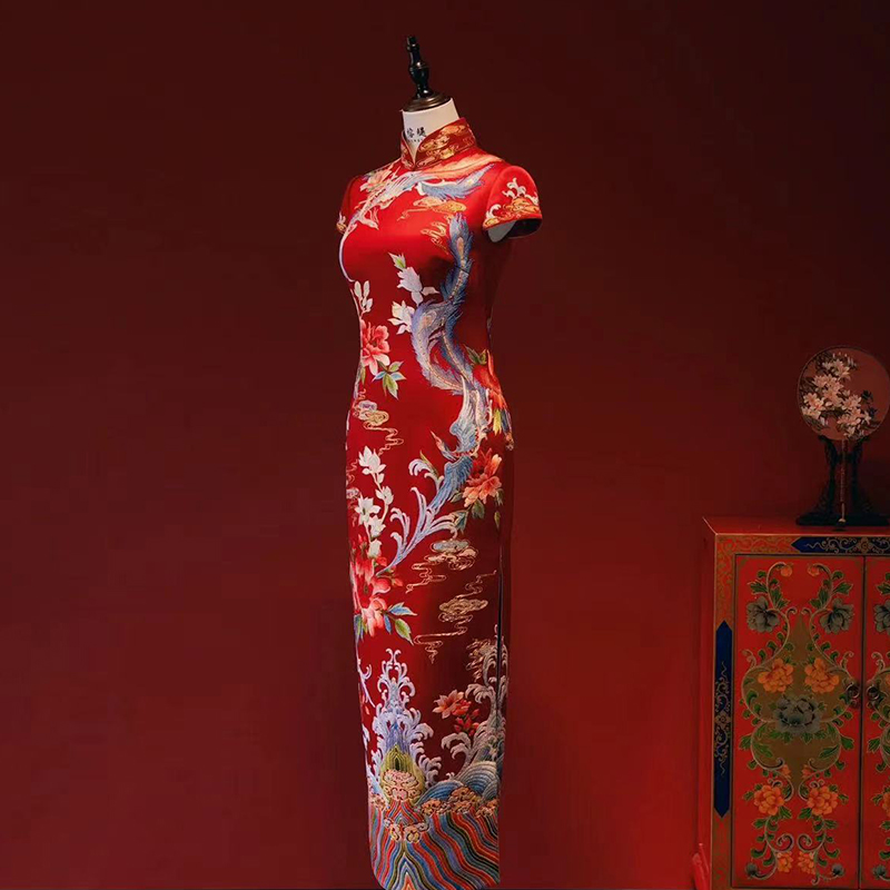 回娘家新中式 日常走秀表演服复古时尚 礼服连衣裙 旗袍长款 2024新款