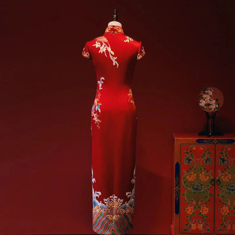 红墙蝴蝶倒大袖 小礼服国风 红色刺绣旗袍秋冬日常订婚女装 新中式