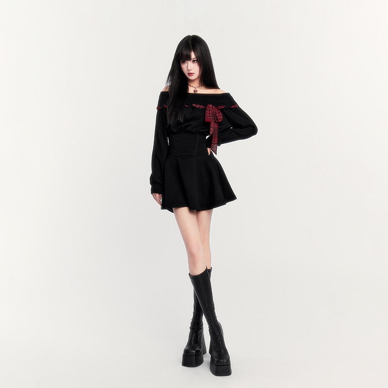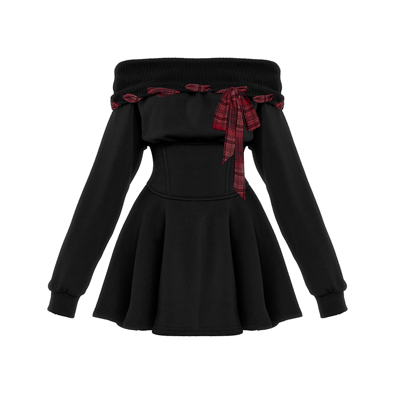 VOCK 暗黑甜酷少女平肩收腰显瘦卫衣裙连衣裙小个子辣妹 心动特调