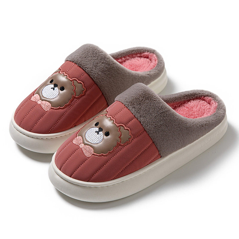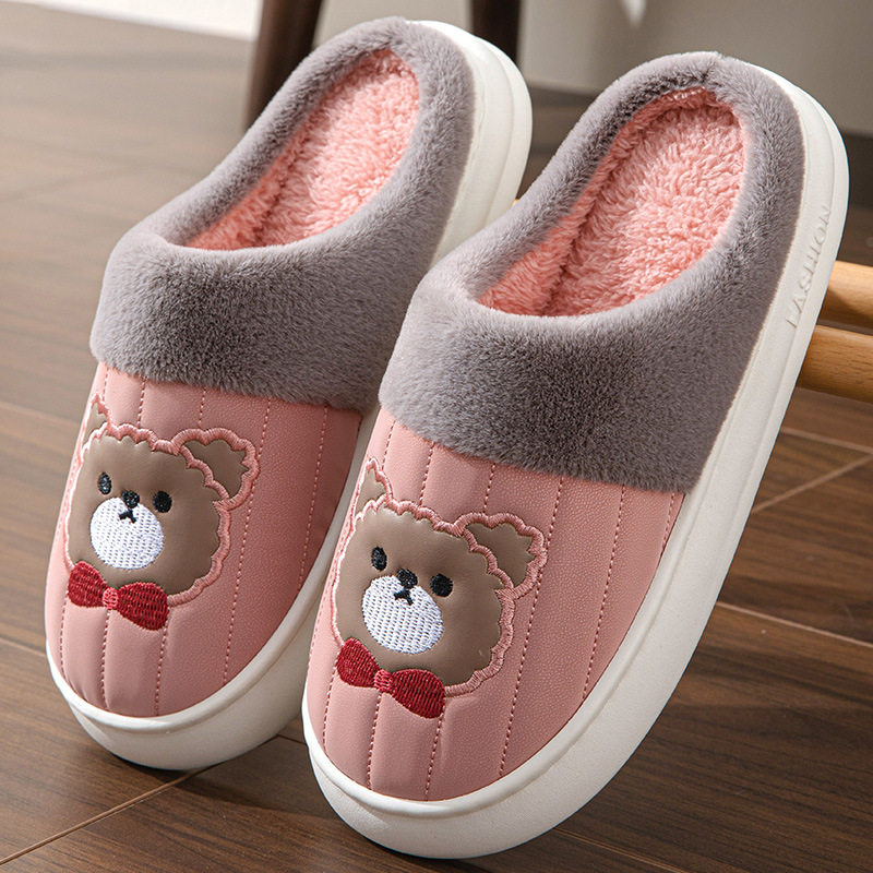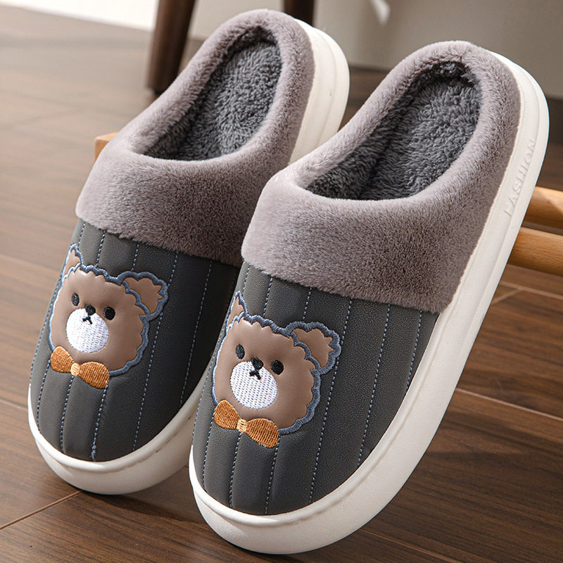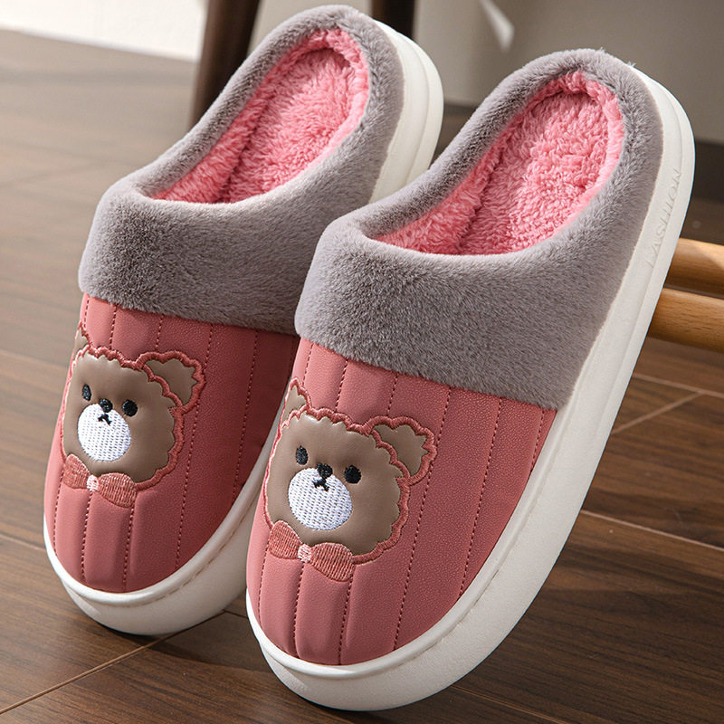 居家厚底防滑情侣家用静音毛绒保暖棉拖鞋 秋冬季 女 男士 防水棉拖鞋