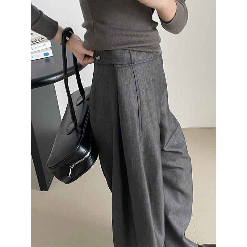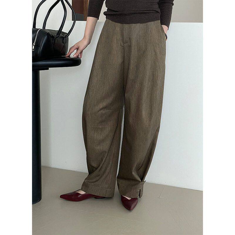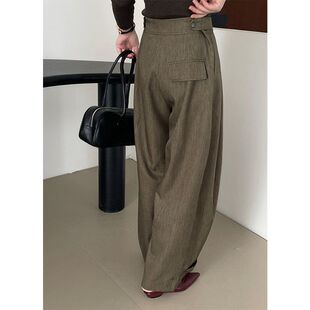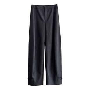 女宽松显腿长腰部按扣长裤 老钱风阔腿休闲西裤 2606 超有范 滔川