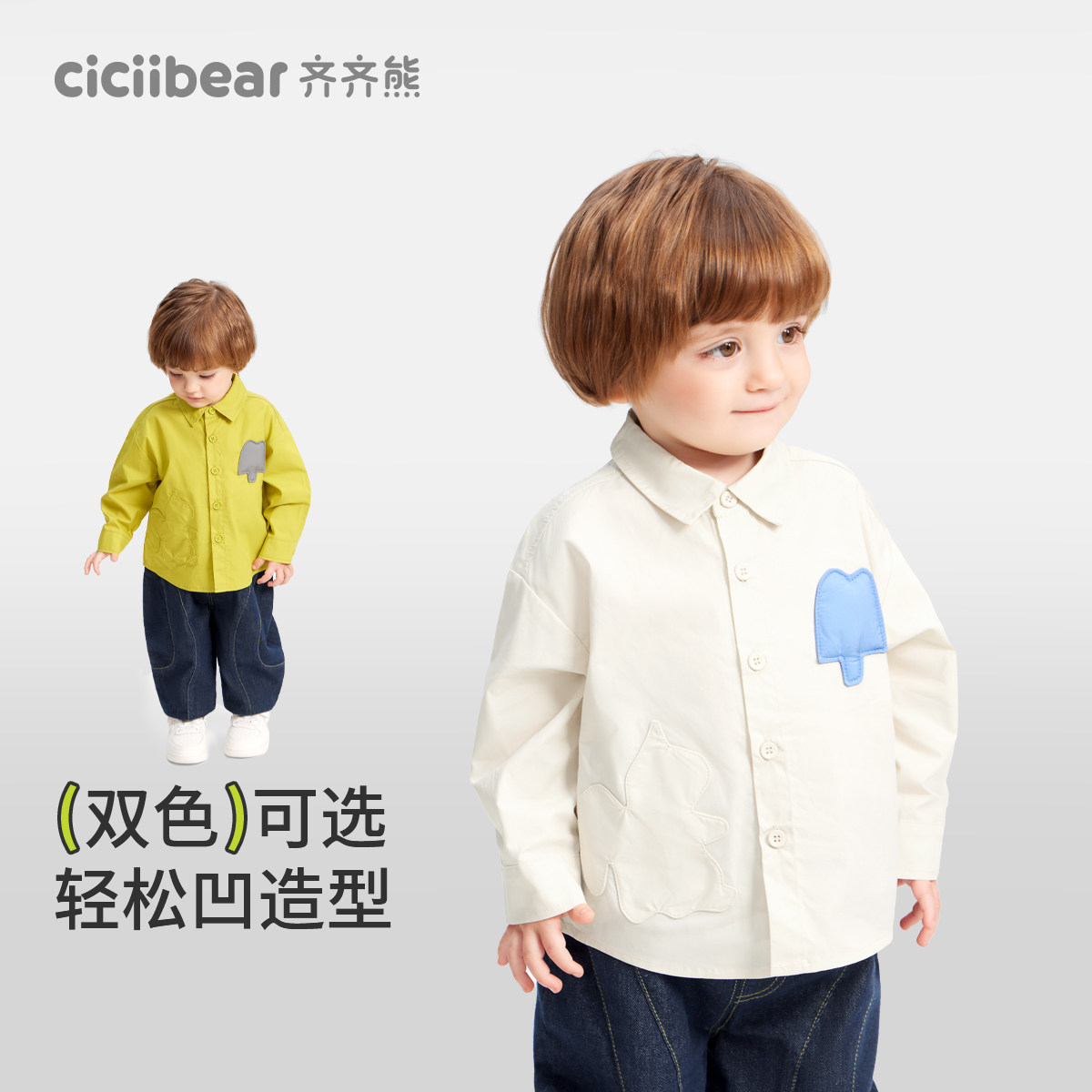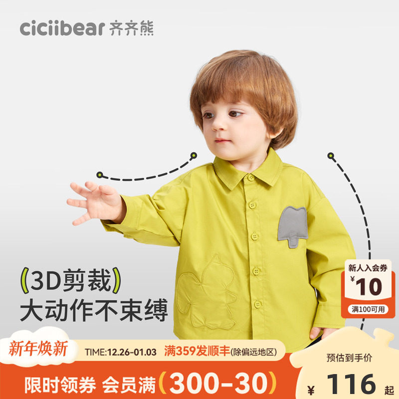 纯棉 长袖 齐齐熊宝宝白衬衫 衬衣儿童春秋款 外套洋气 男童长袖