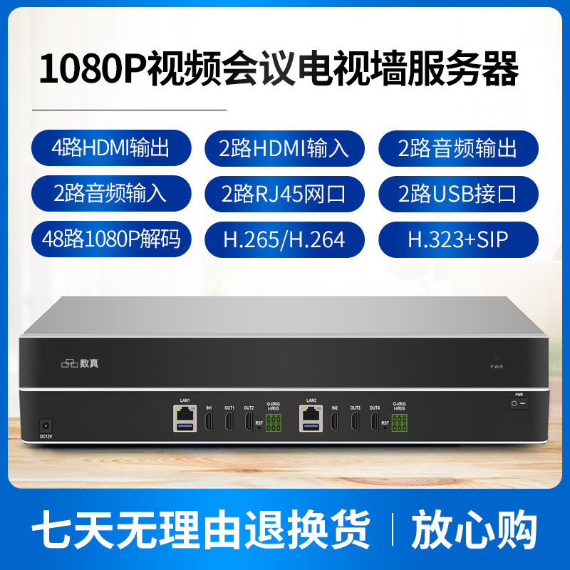 数真1080P高清视频会议电视墙服务器TV3000N 兼容主流品牌H.323视频会议MCU 4支持4路HDMI输出48路1080P60解码