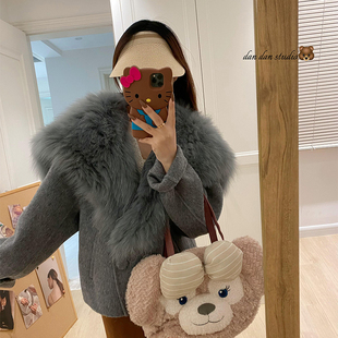 2025冬狐狸毛皮草海军领麂皮夹克女短款 派克服羽绒服高端棕色外套