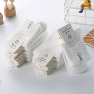 六指鼠春秋季 中筒宝宝黑白色学生袜子 儿童纯棉袜男童女童纯色厚款