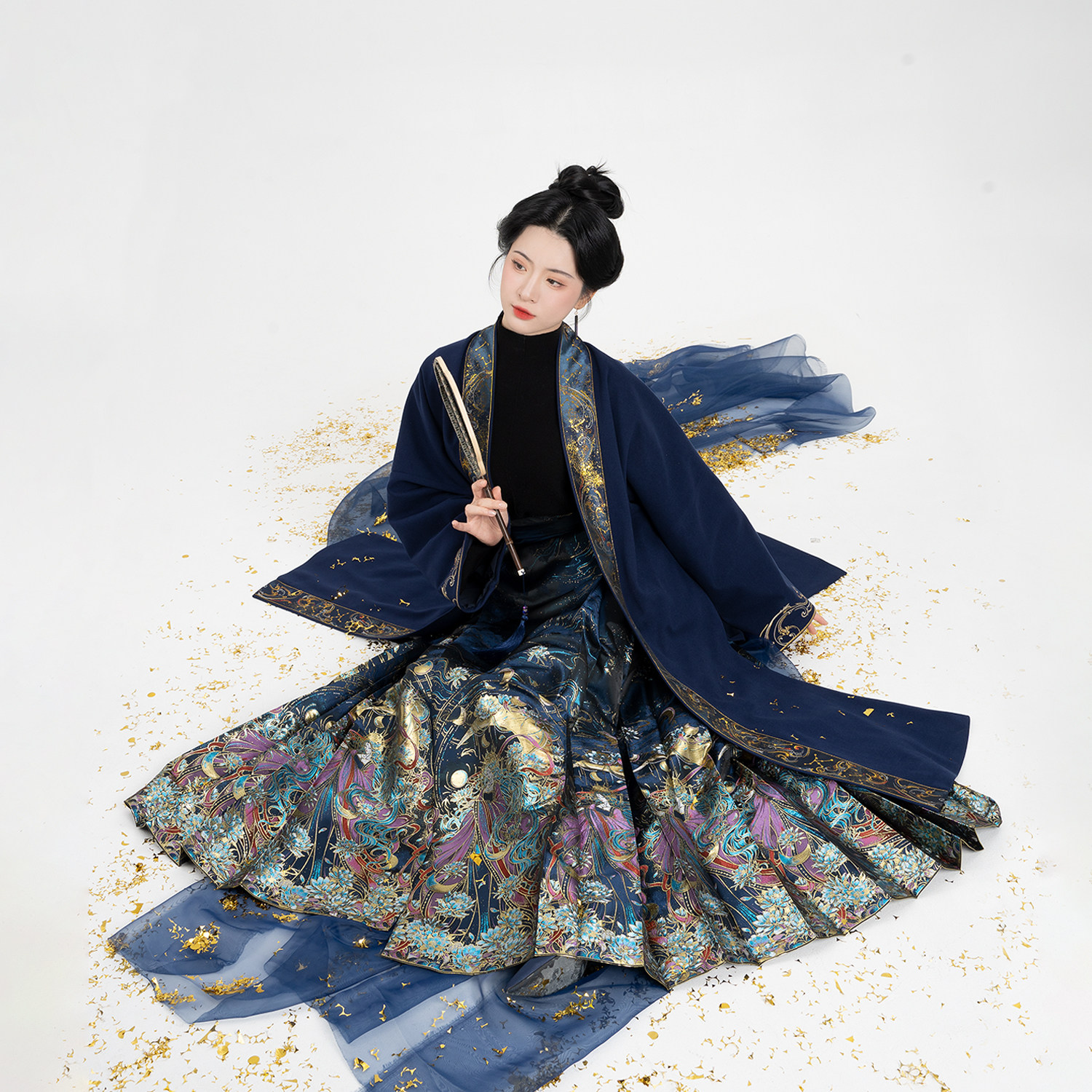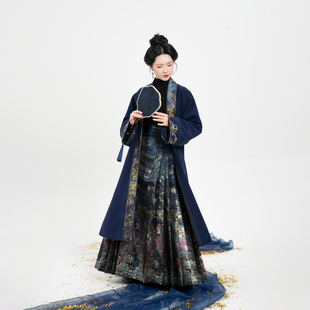 秋冬加厚日常百搭 马面裙套装 觅锦明制汉服女改良对襟开衫 弓袋袖