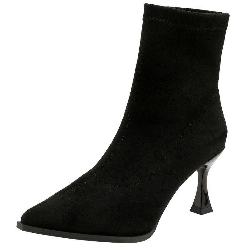 配大衣靴子弹力瘦瘦靴 冬季 大东高跟短靴女2025新款 秋冬尖头高跟鞋