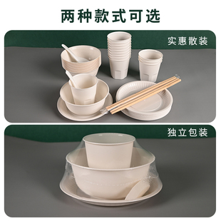 稻壳一次性餐具四件套碗筷套装 食品级可降解家用火锅烧烤露营野餐
