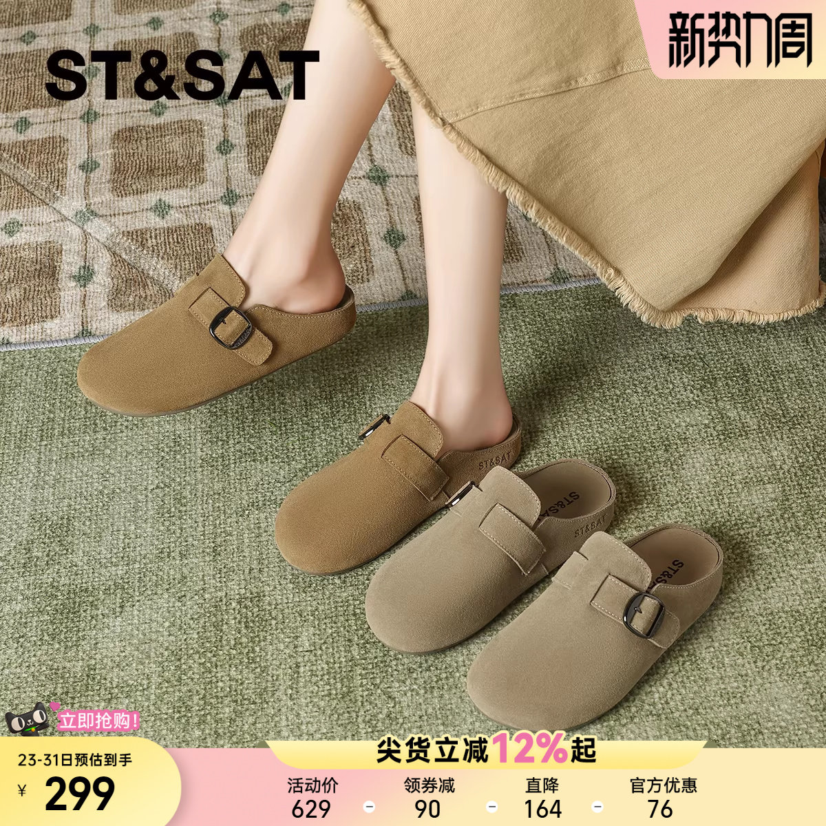 半拖女鞋 直 2025夏季 厚底森系百搭一脚蹬 新款 星期六真皮勃肯鞋