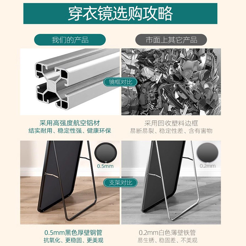 全身镜穿衣落地镜子不变形贴墙网红女生卧室化妆挂墙立体试衣镜