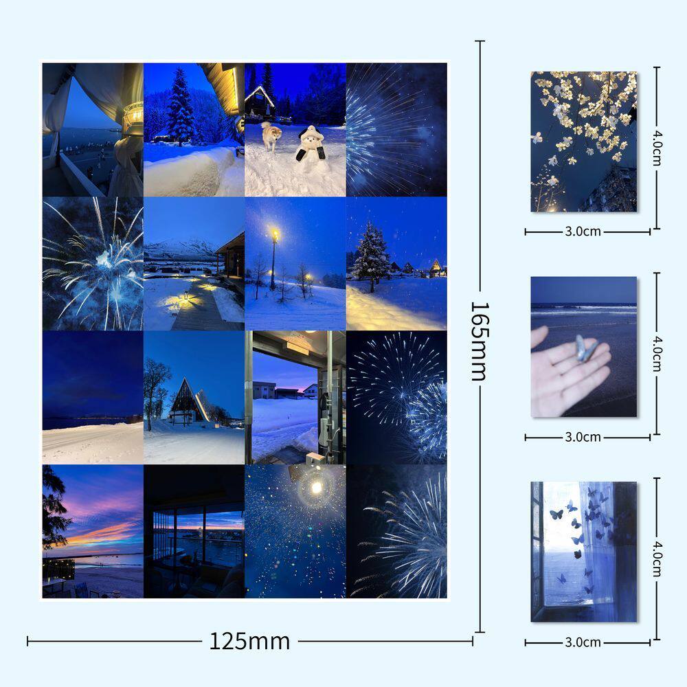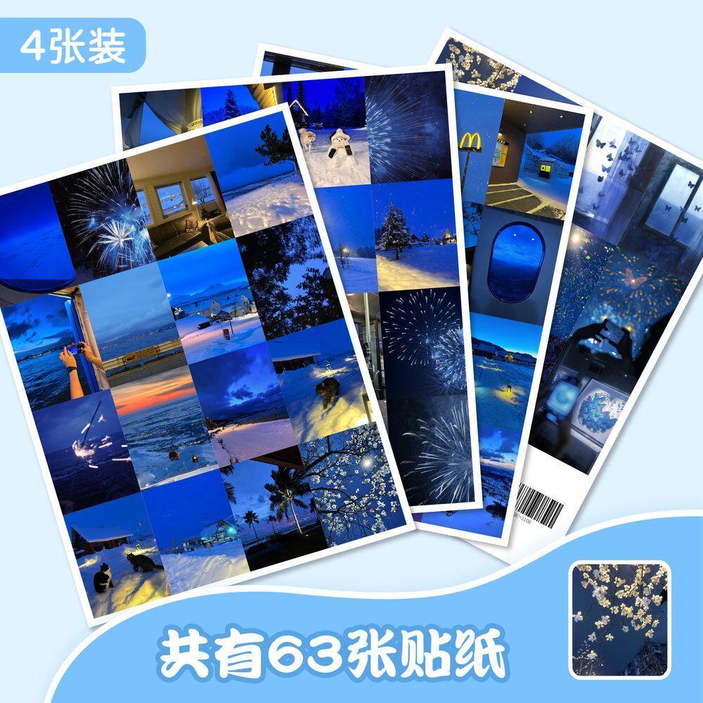 188张治愈蓝调时刻风景贴纸唯美ins装 饰清新贴纸手账防水手机贴画