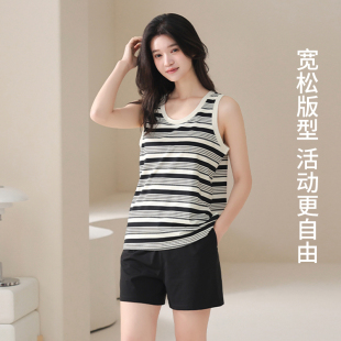 新一步纯棉无袖 吊带睡衣女士条纹印花凉感透气高级感家居服 短裤
