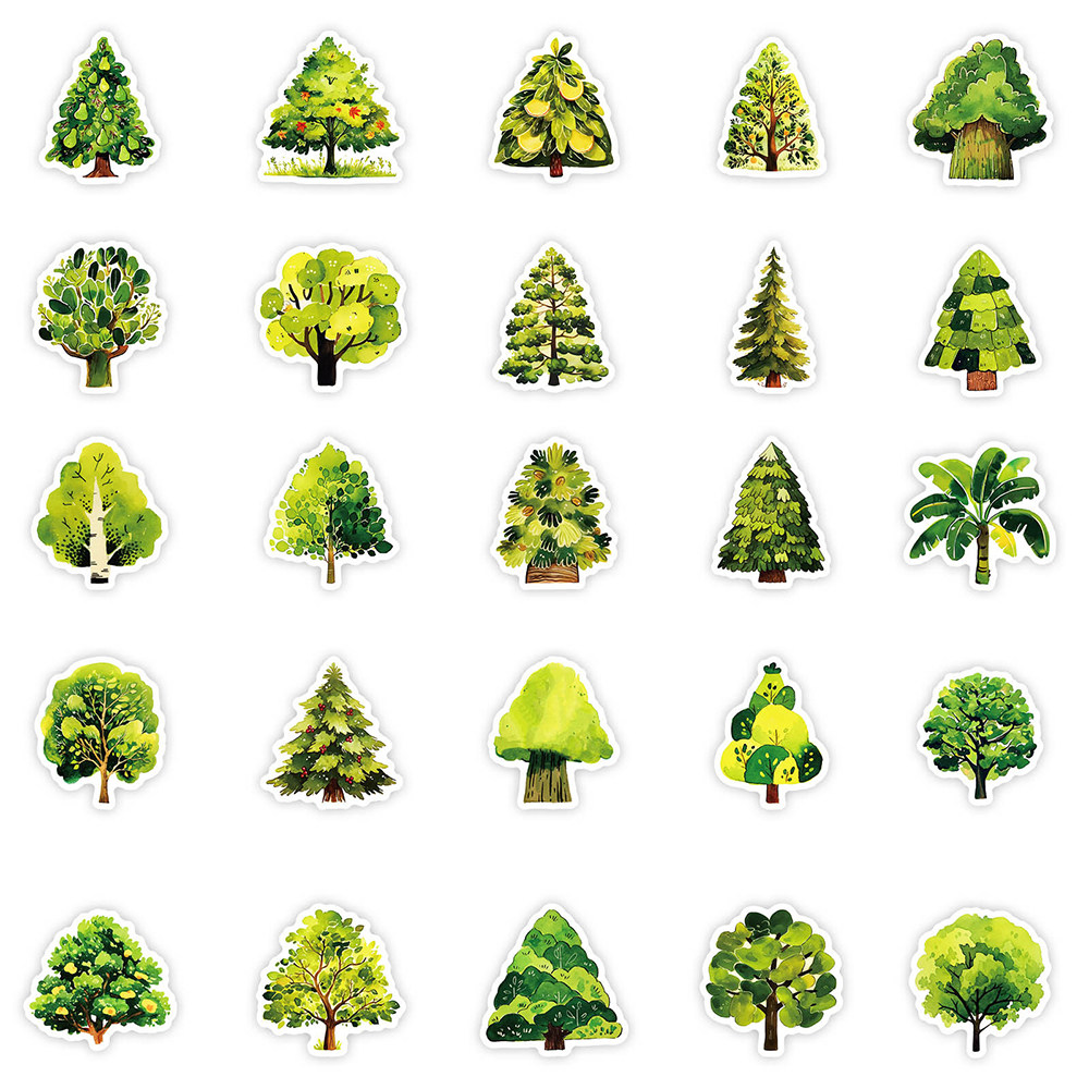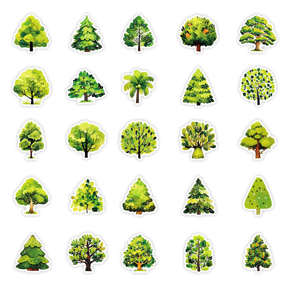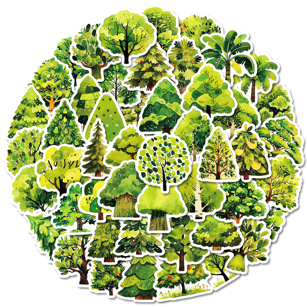 100张卡通小清新树木贴纸ins风笔记本桌面手账创意装 饰贴画防水