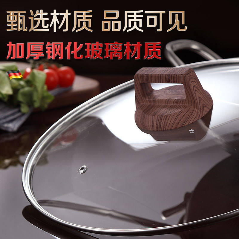 锅盖家用钢化玻璃32cm炒锅30不锈钢蒸锅耐高温28把手配件万能通用