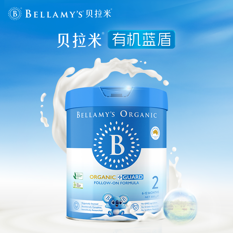12月800g 贝拉米有机蓝盾乳铁蛋白2段幼儿奶粉6 6罐 官方正品