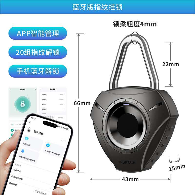 蓝牙指纹挂锁家用防盗智能电子锁头柜子指纹小锁小型书包锁