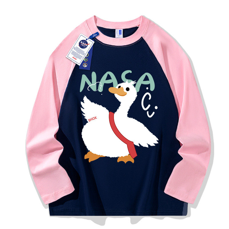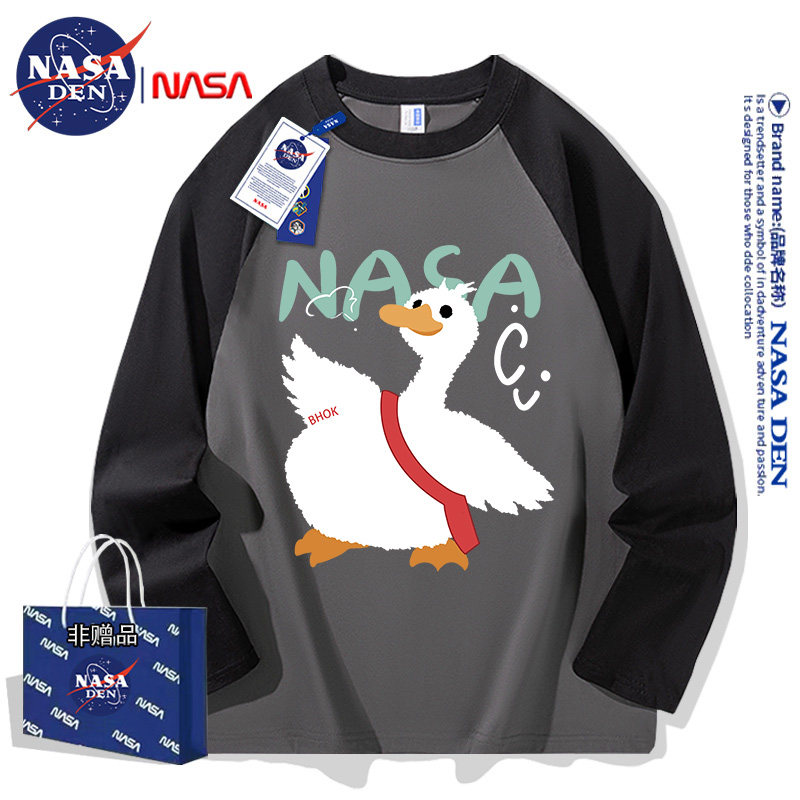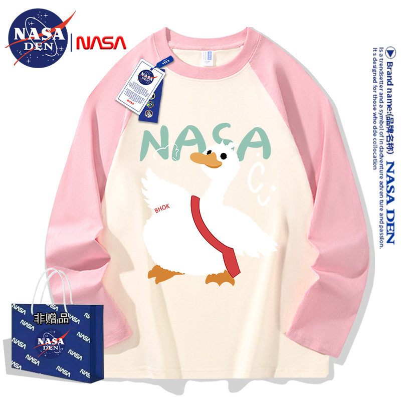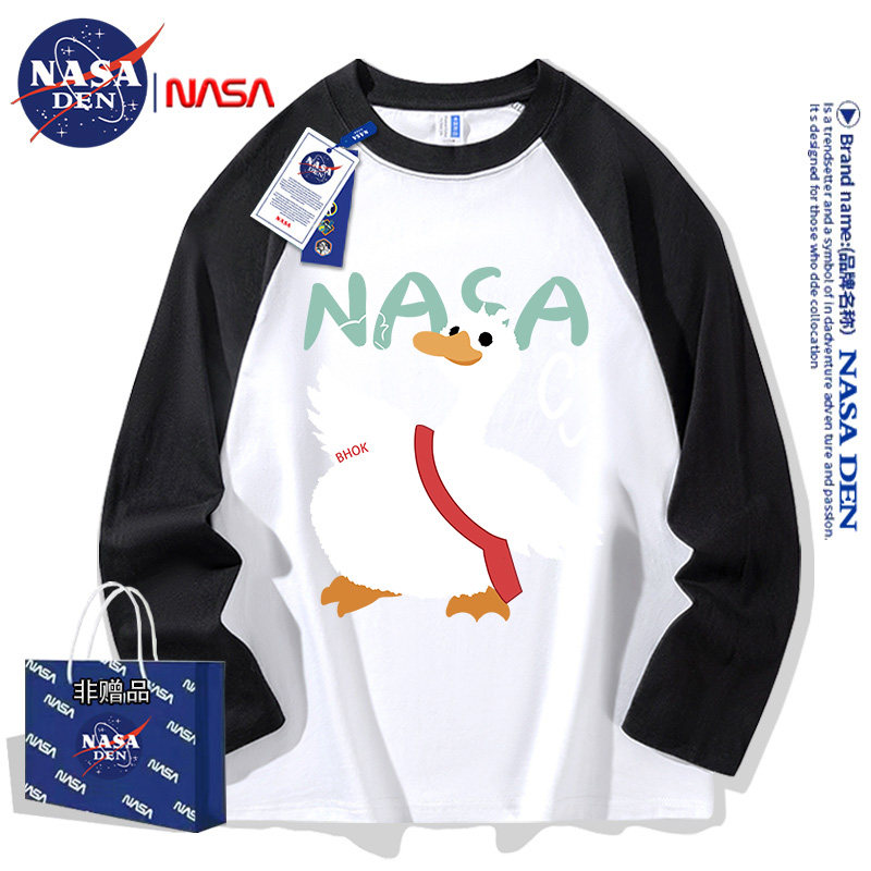 潮流时尚 秋季 印花ins插肩上衣 T恤男女款 NASA联名拼接重磅纯棉长袖
