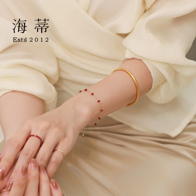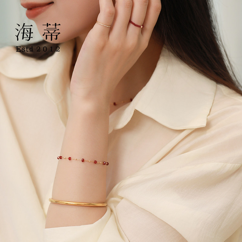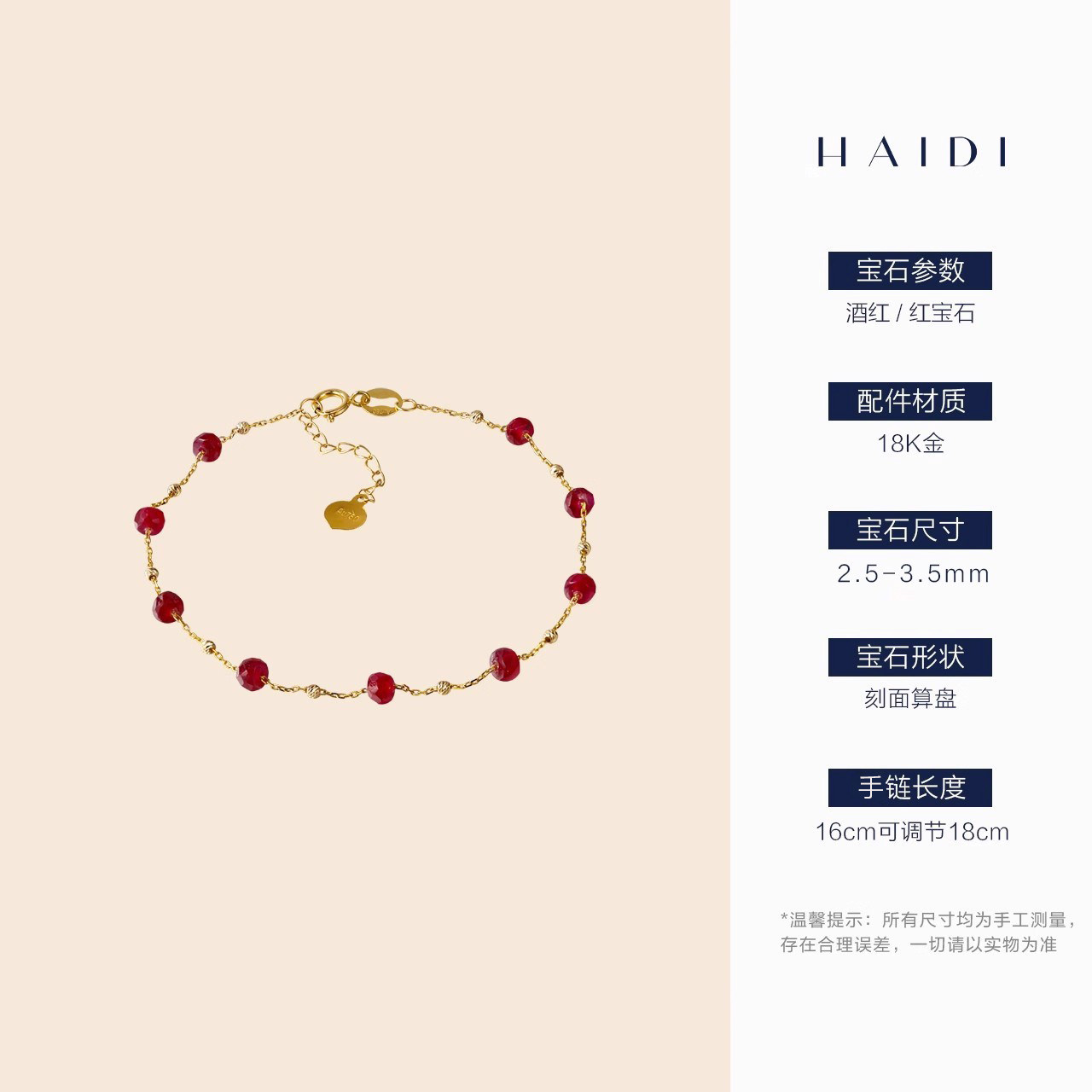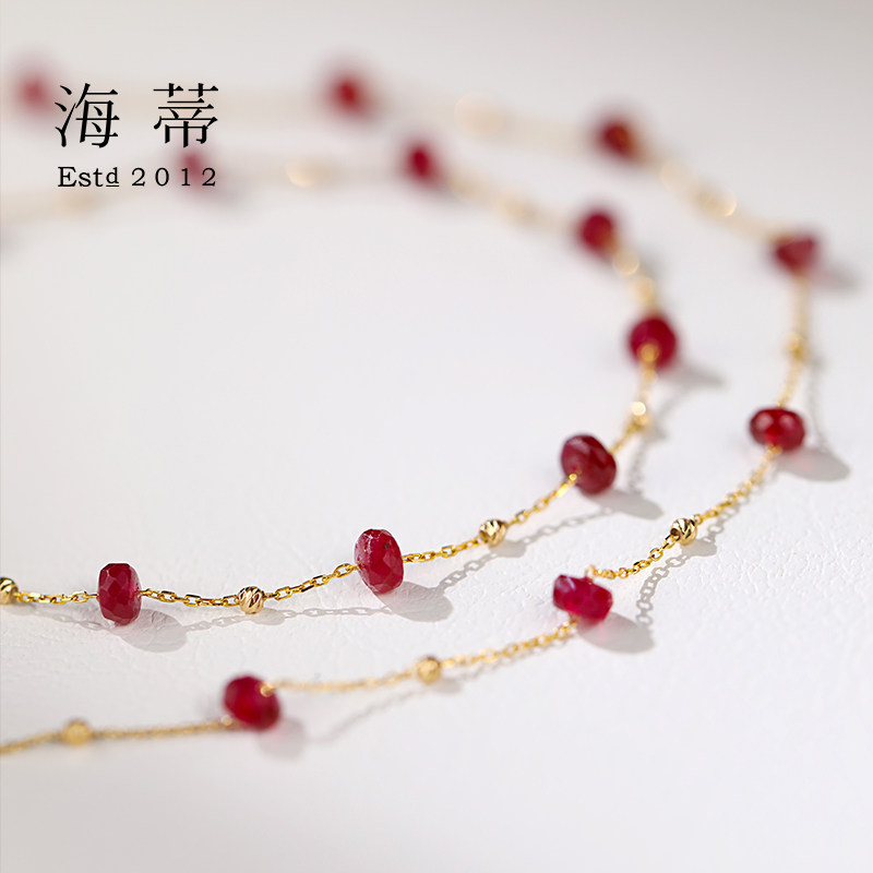 3.5mm鸽血红宝石满天星手链18K金送女友 2.5 海蒂珠宝 微醺波尔多