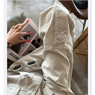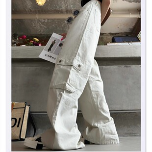 牛仔裤 高腰宽松直筒工装 秋冬兜盖口袋阔腿拖地长裤 猫猫家加长女裤