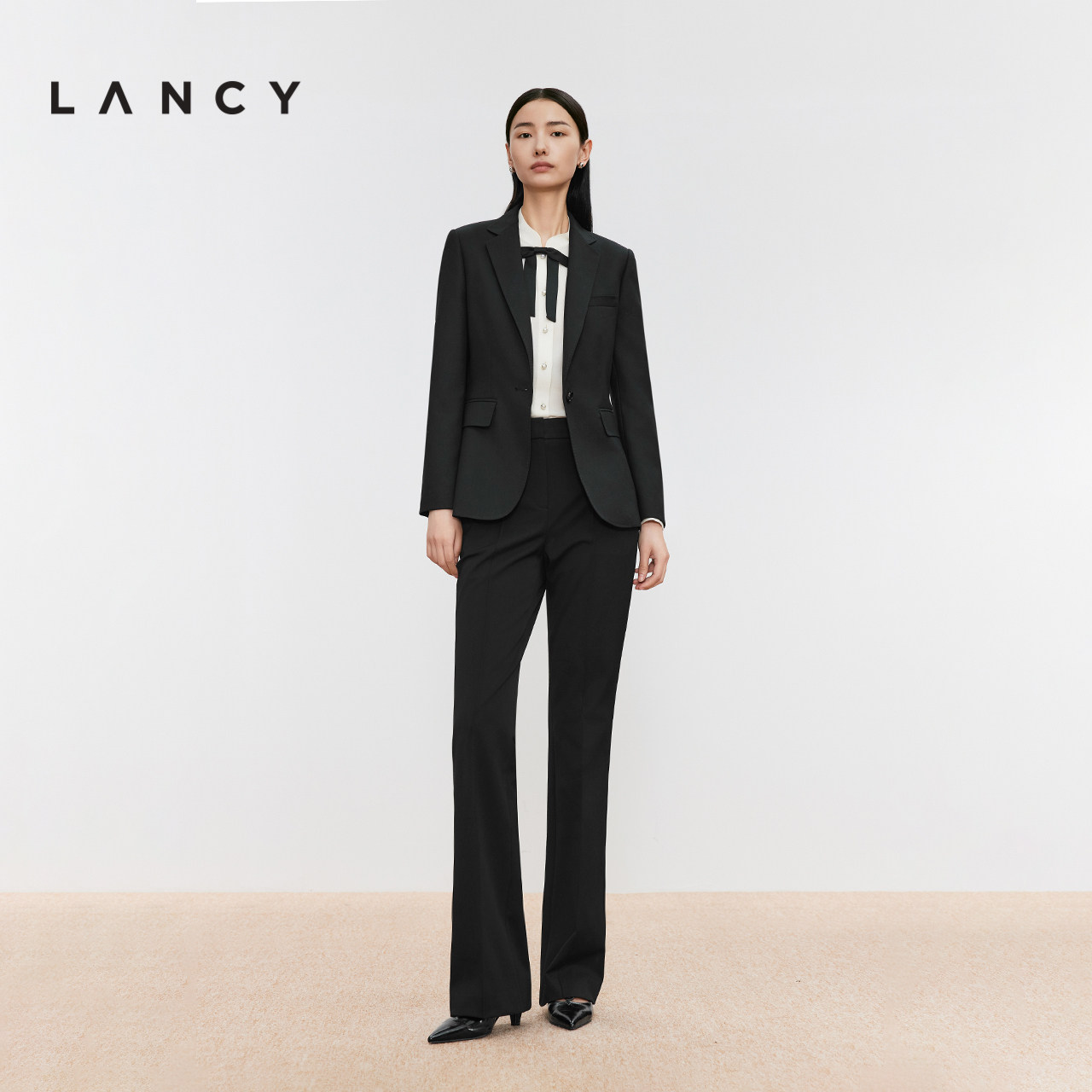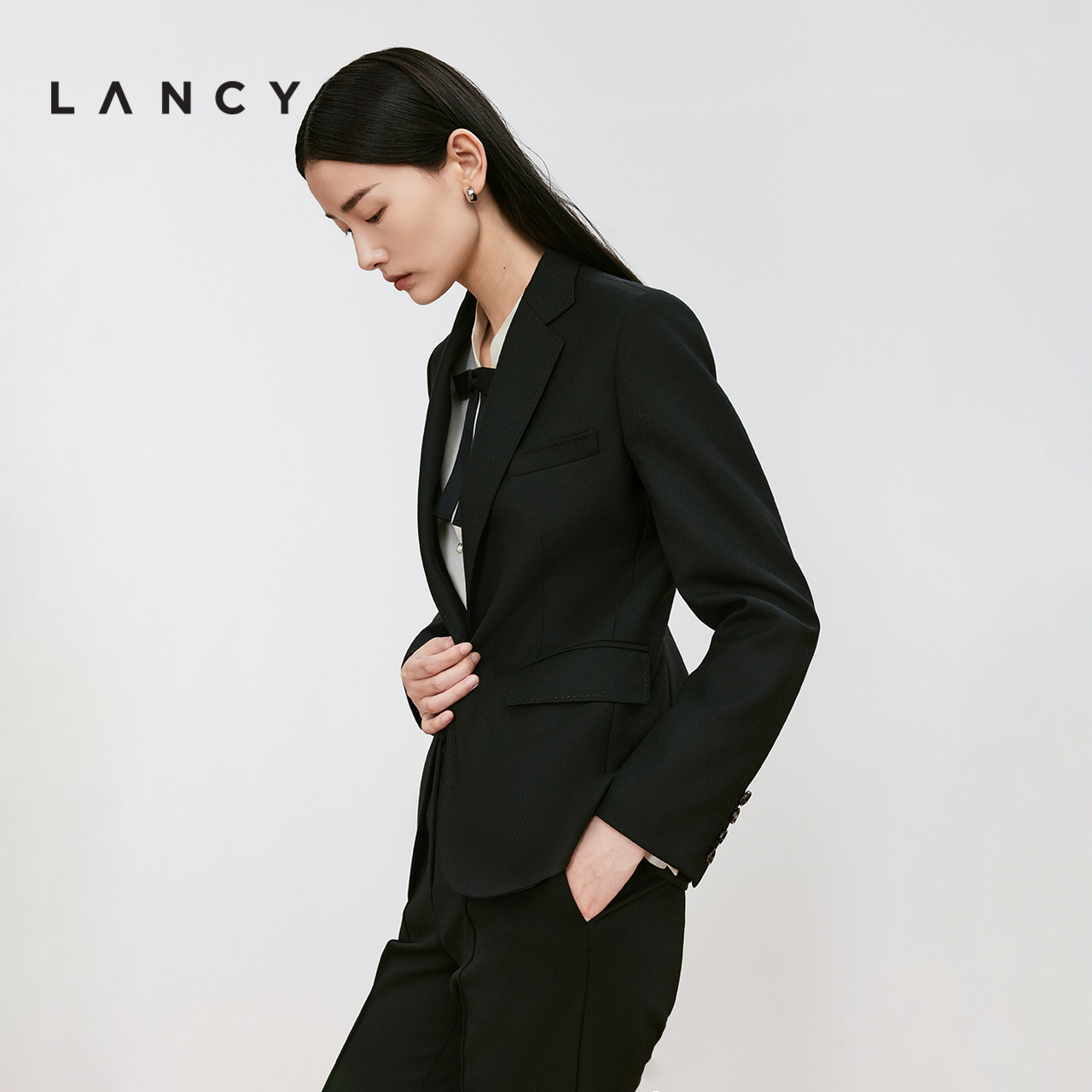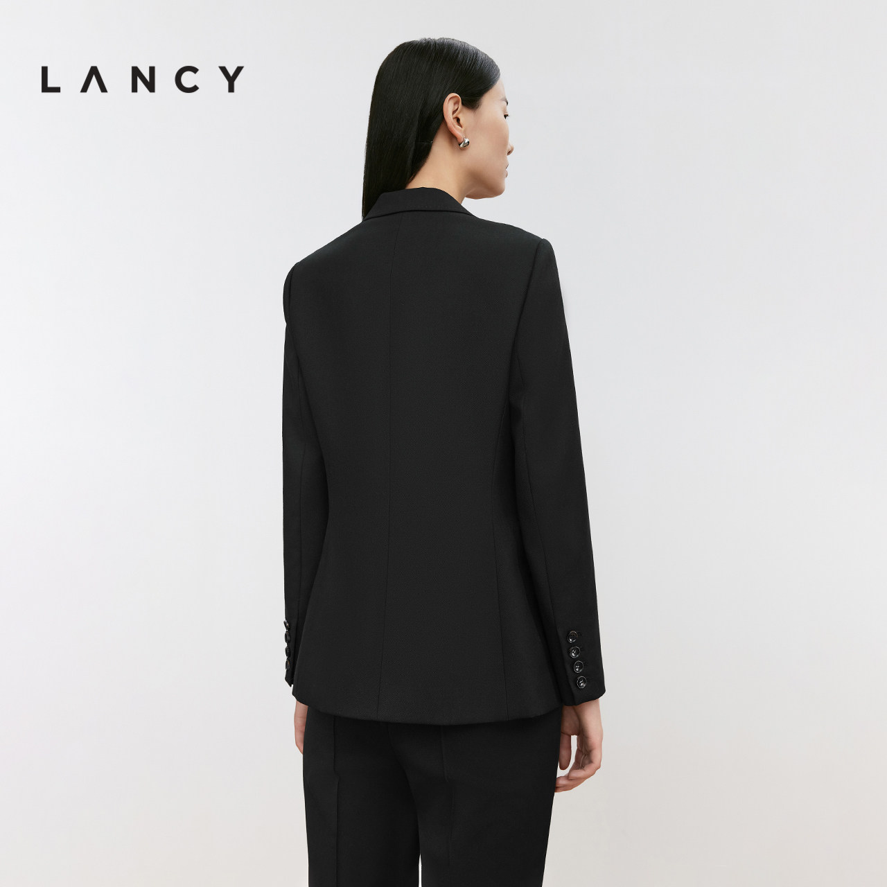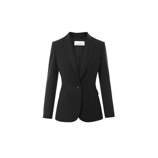 羊毛混纺收腰黑色西装 朗姿2024冬新款 LANCY 外套女 宋佳同款