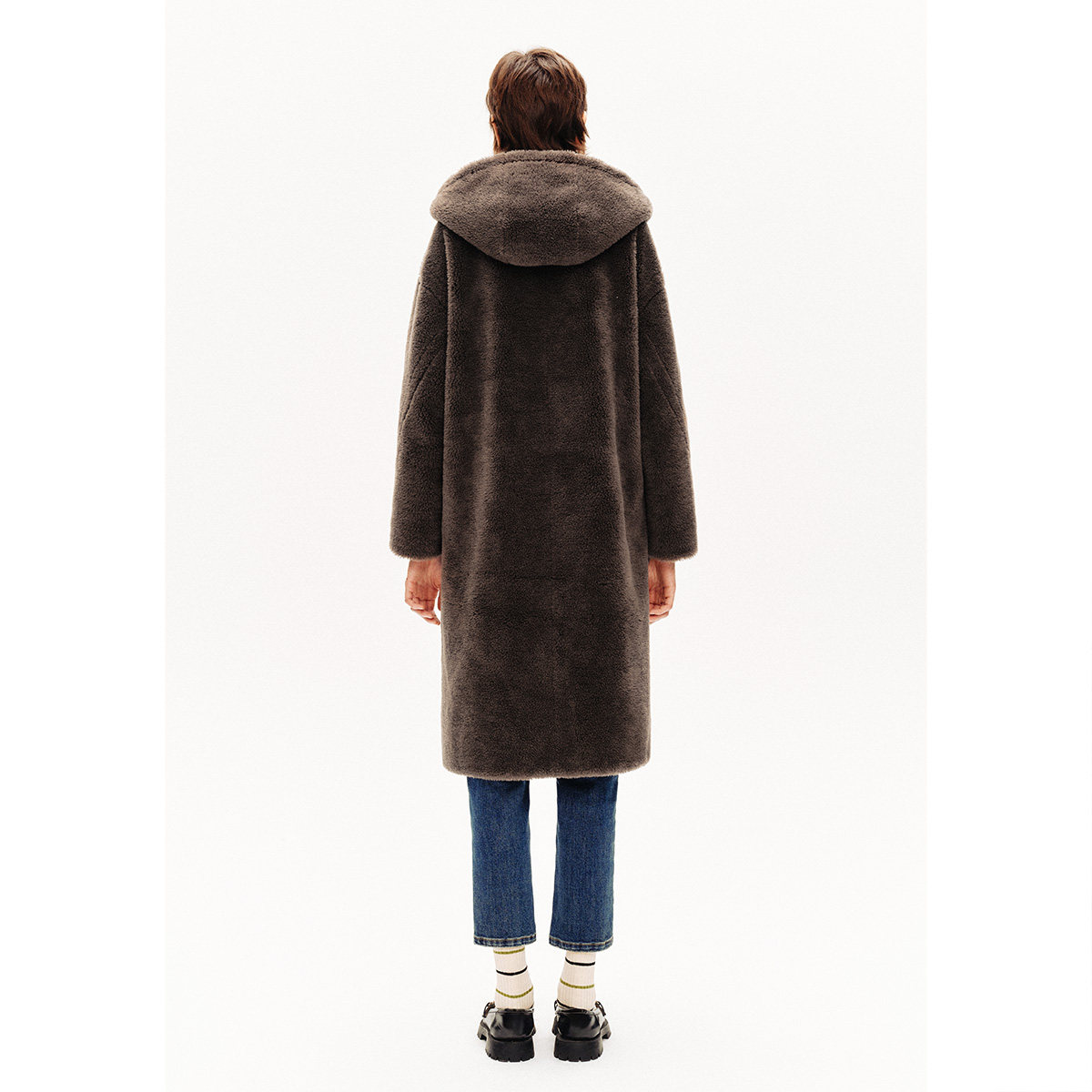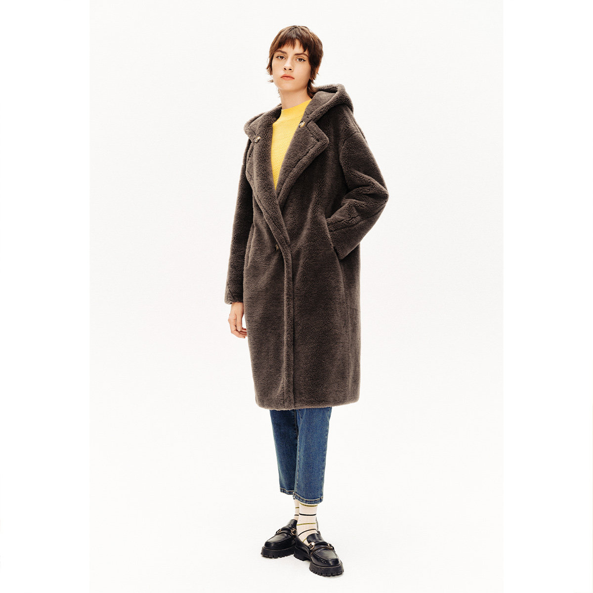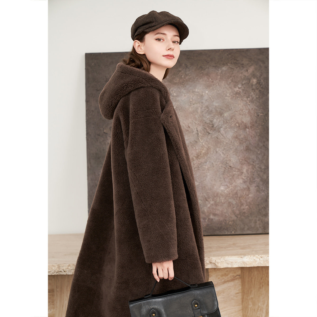 诗篇专选雅丹风软糯颗粒绒连帽毛绒大衣冬款 100%绵羊毛