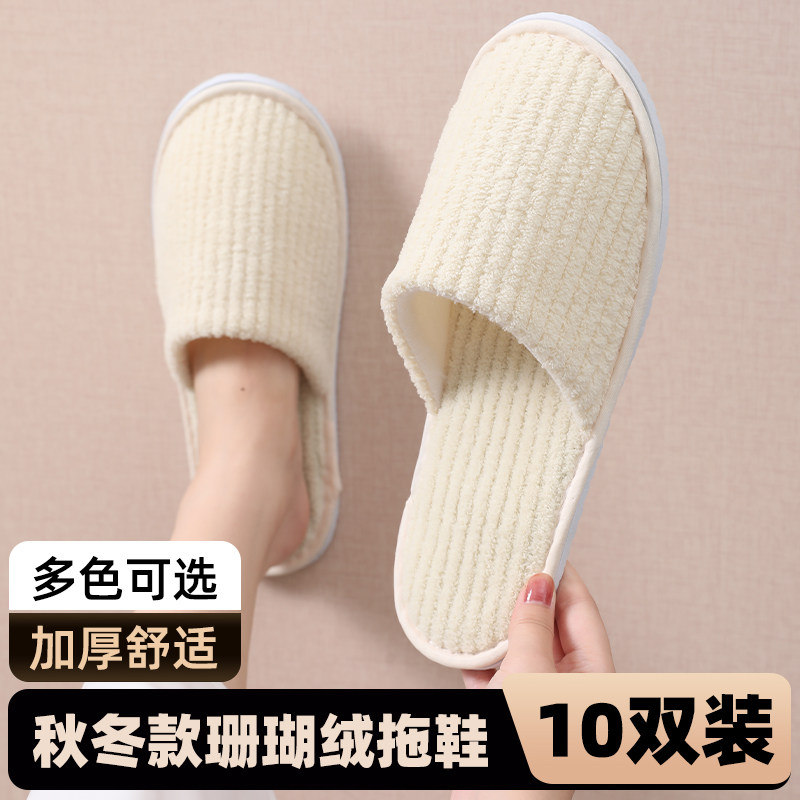 酒店一次性拖鞋 珊瑚绒加厚防滑家用待客旅游高档宾馆民宿秋冬专用